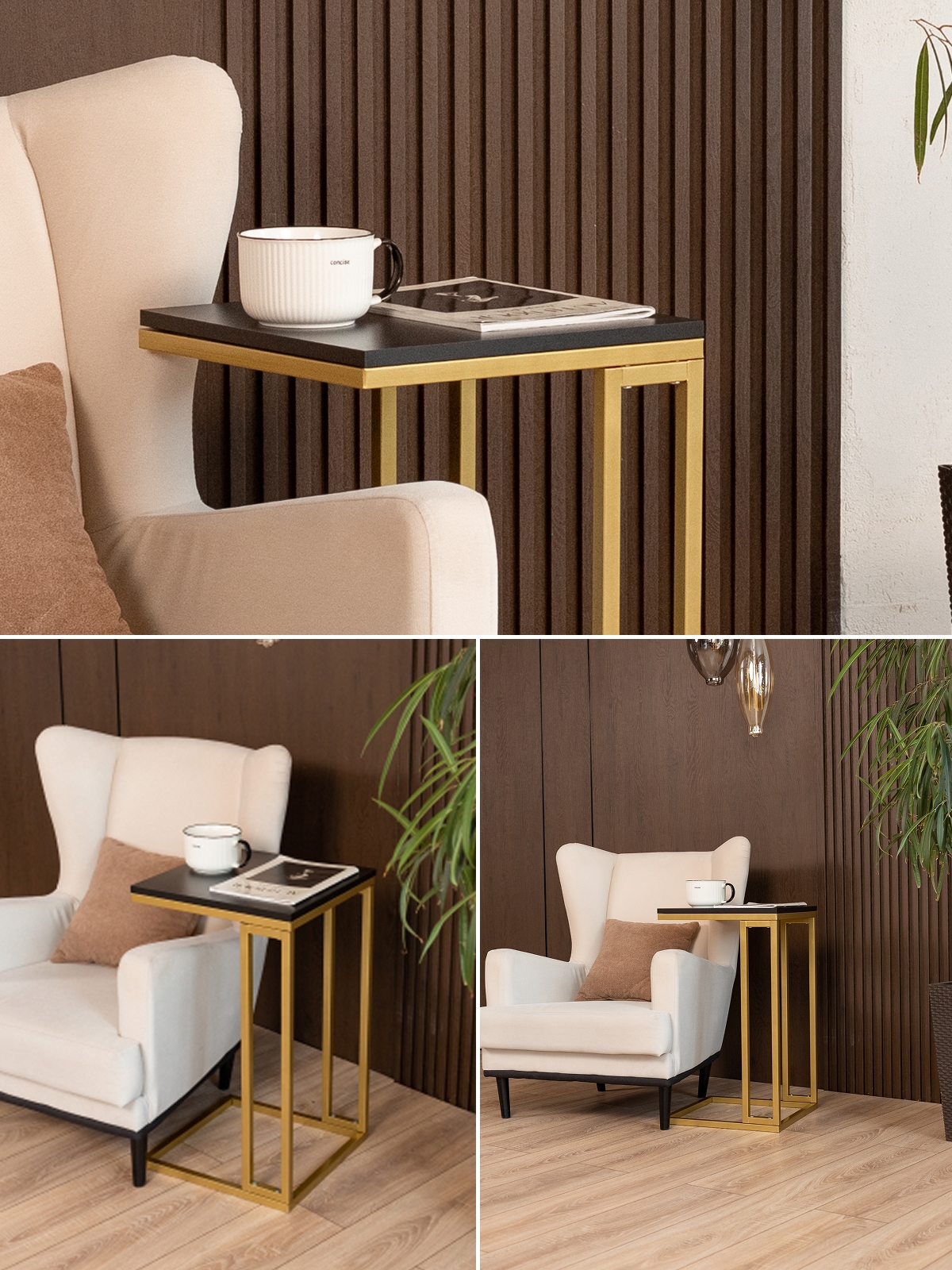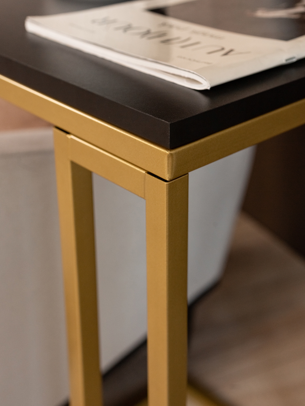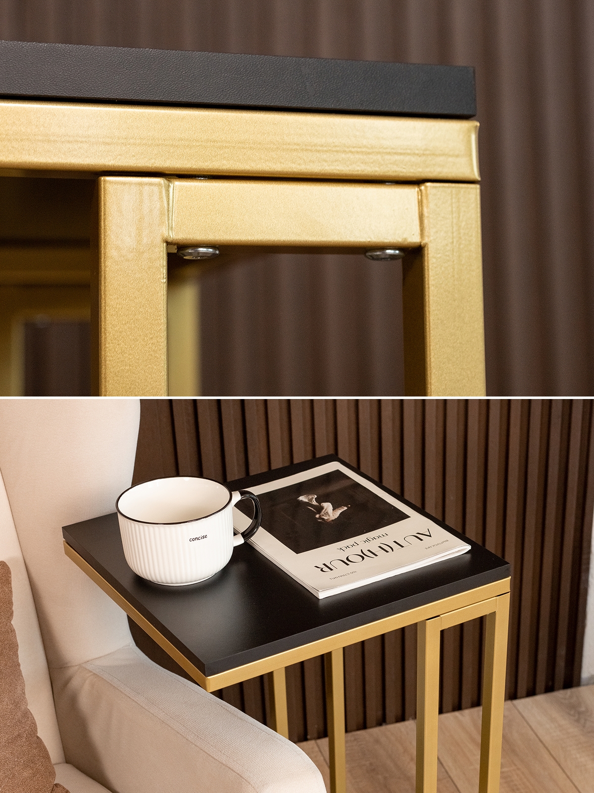 Прикроватный столик «Римо» с золотым каркасом — это выбор в пользу комфорта, эстетики и нескучной функциональности. Он станет той самой деталью, которая делает пространство живым и интересным.