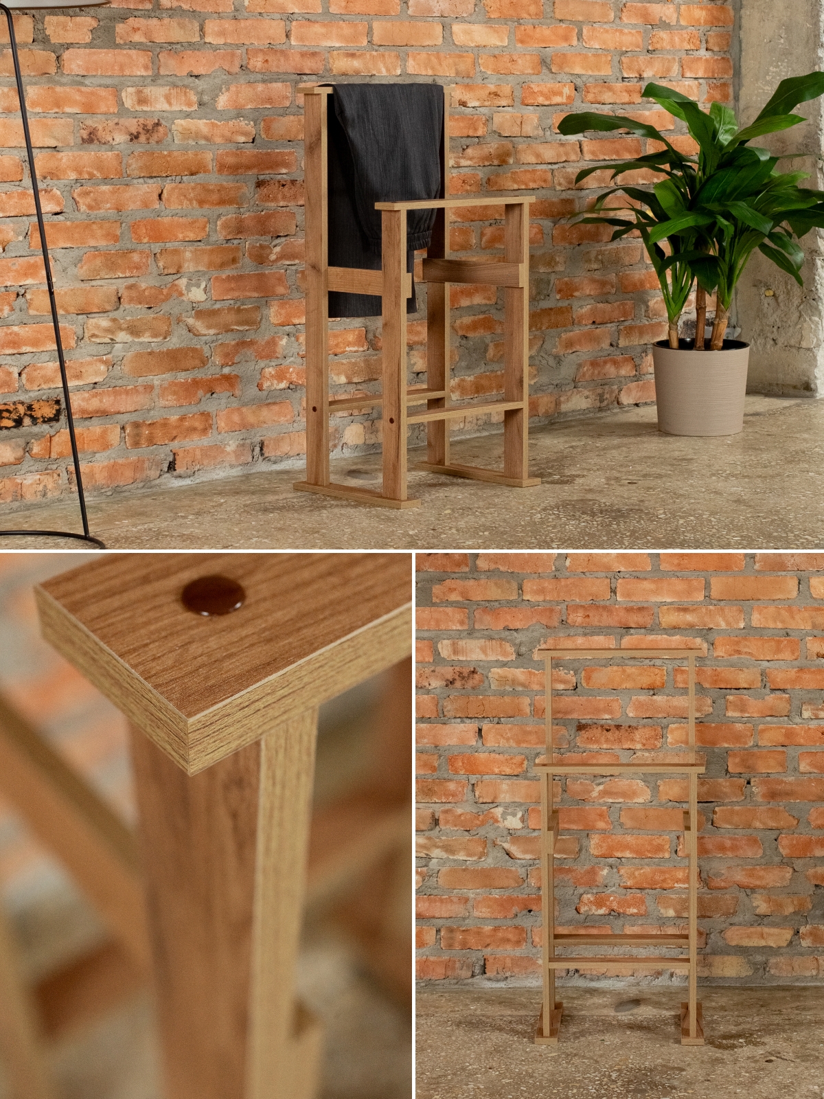 Благодаря компактной форме и узкой конструкции изделие не занимает много места, что особенно важно для маленьких комнат и детских. Двухуровневая стойка обеспечивает удобное размещение различного вида одежды и аксессуаров. На рейлах можно вешать рубашки, костюмы, детскую одежду и повседневные вещи как на плечики, так и без них. Боковые перекладины дают дополнительное пространство для полотенец, делая вешало многофункциональным элементом комнаты.