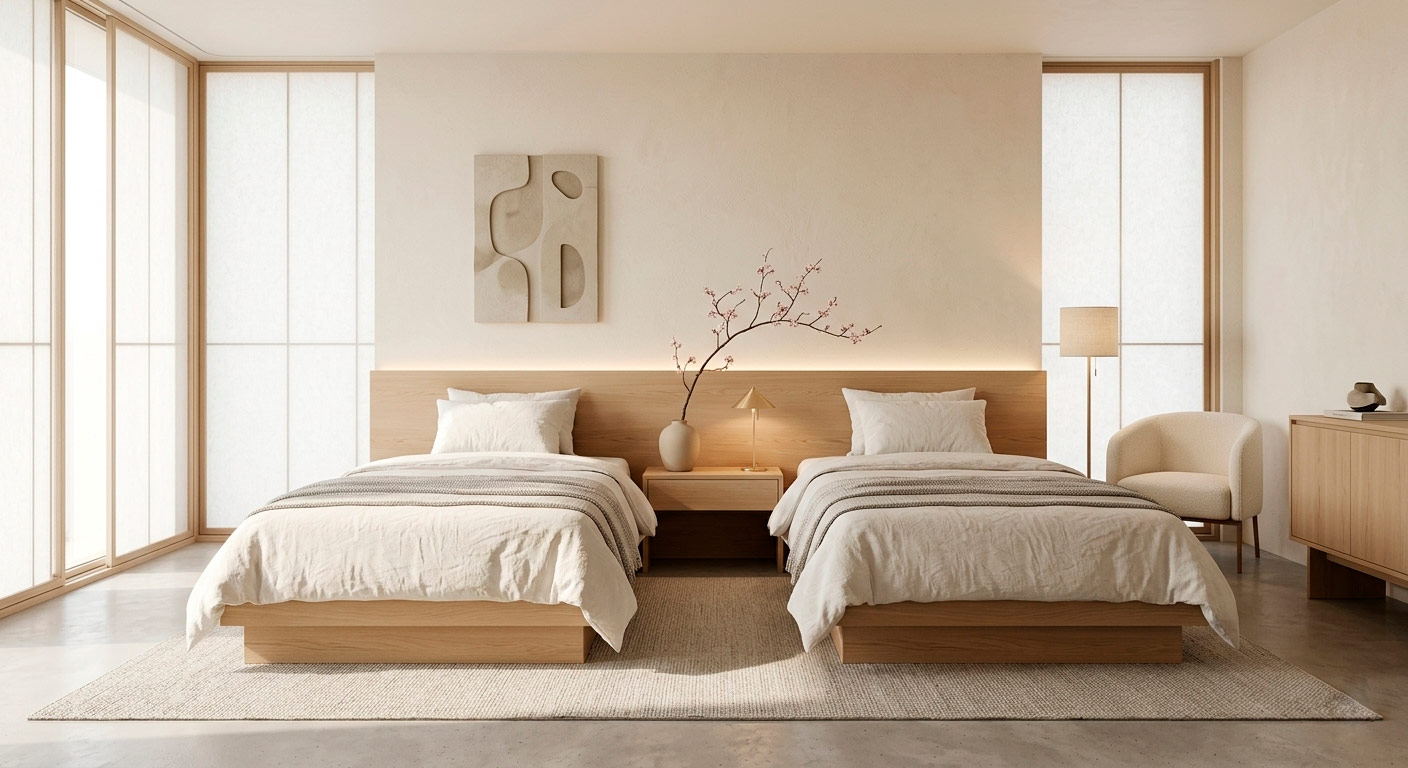 Эти стили стали ответом на информационный шум мегаполисов. Джапанди (смесь скандинавского уюта и японской сдержанности) идеально подходит для номерного фонда. Чистые линии, отсутствие лишнего декора и низкая мебель способствуют глубокому психологическому отдыху.