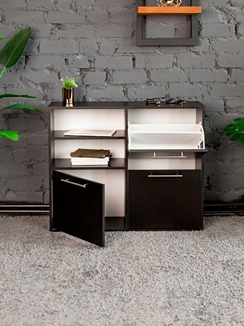 Отдайте предпочтение шкафам под потолок: меньше пыли и все вещи скрыты за фасадами. На невысоком шкафчике рано или поздно окажутся какие-нибудь вещи, что будет выглядеть не совсем опрятно.