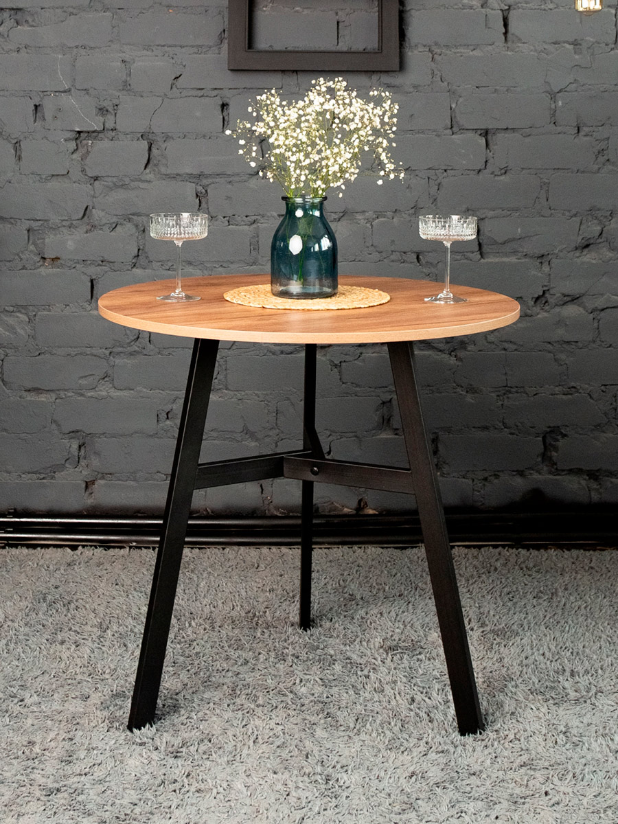 - Круглый стол — классика, создающая атмосферу единения. Безопасен благодаря отсутствию углов. Модели на одной центральной ножке элегантны и экономят пространство.