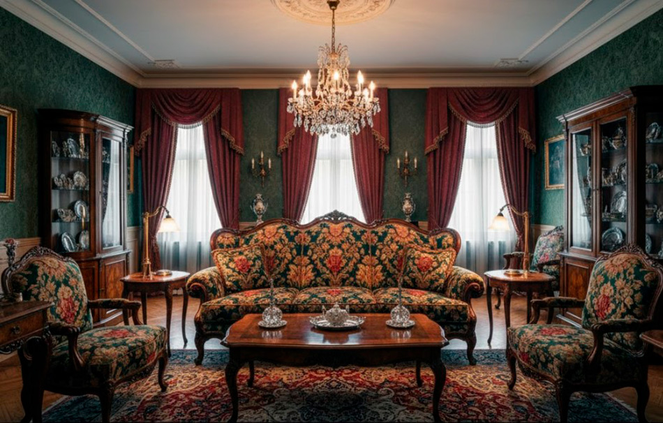 - Классика, неоклассика: жаккард, гобелен, велюр, шенилл.