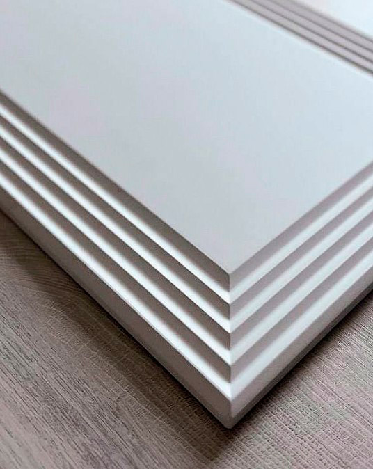 Особенности. Отличается высокой плотностью, однородностью структуры, при этом хорошо обрабатывается. Материал можно фрезеровать, создавая объемные узоры, фигурные фасады, панели для отделки стен, даже гнутые детали. Плита имеет гладкую поверхность, идеальную для покраски, покрытия эмалью или отделки шпоном. По прочности и экологичности МДФ близок к натуральному дереву, но при этом стоит дороже ЛДСП.