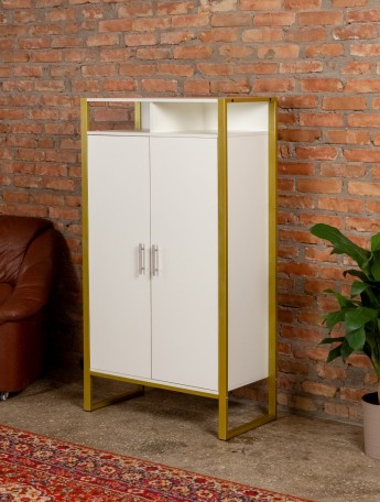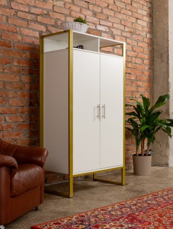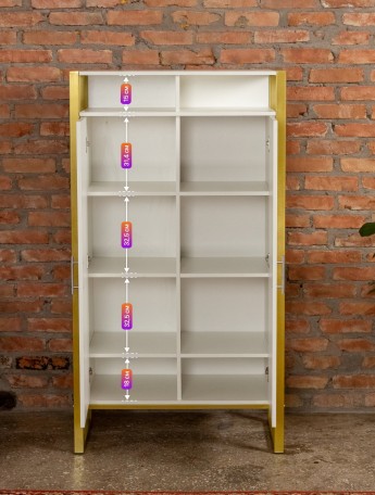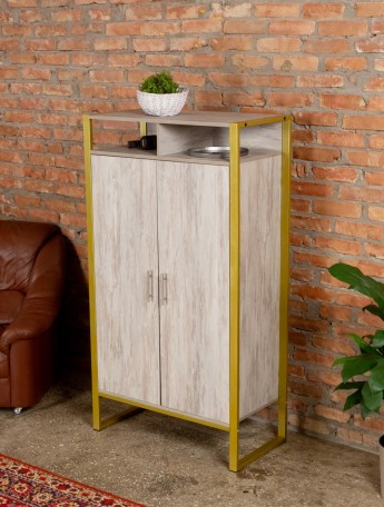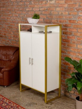Настенный стеллаж выполнен из ЛДСП. Это прочный материал, который устойчив к перепадам температур и влажности воздуха.
