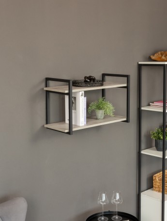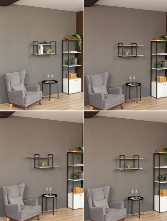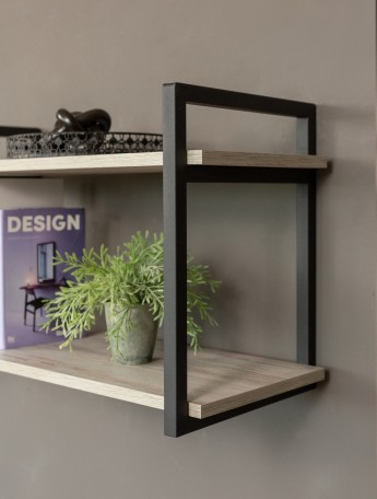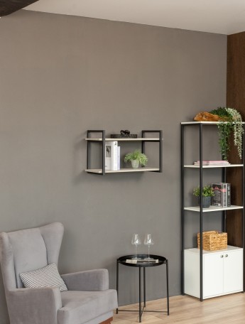 Настенный стеллаж выполнен из ЛДСП. Это прочный материал, который устойчив к перепадам температур и влажности воздуха.
