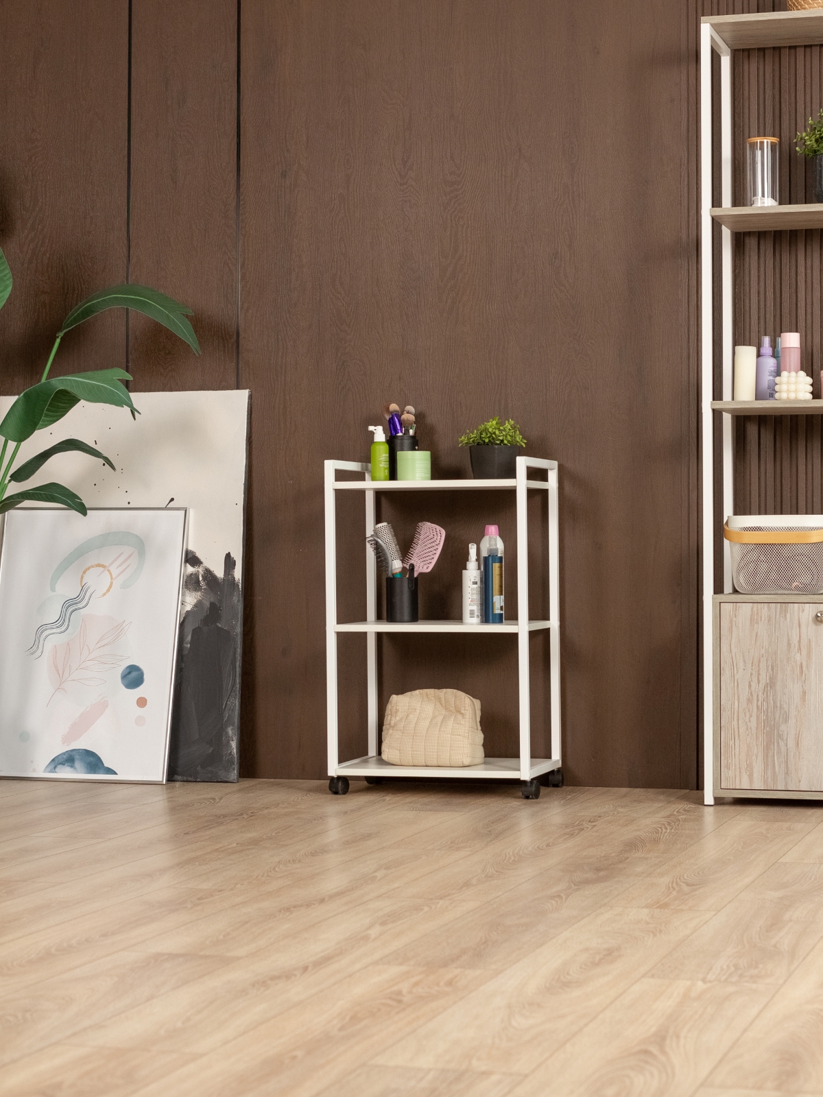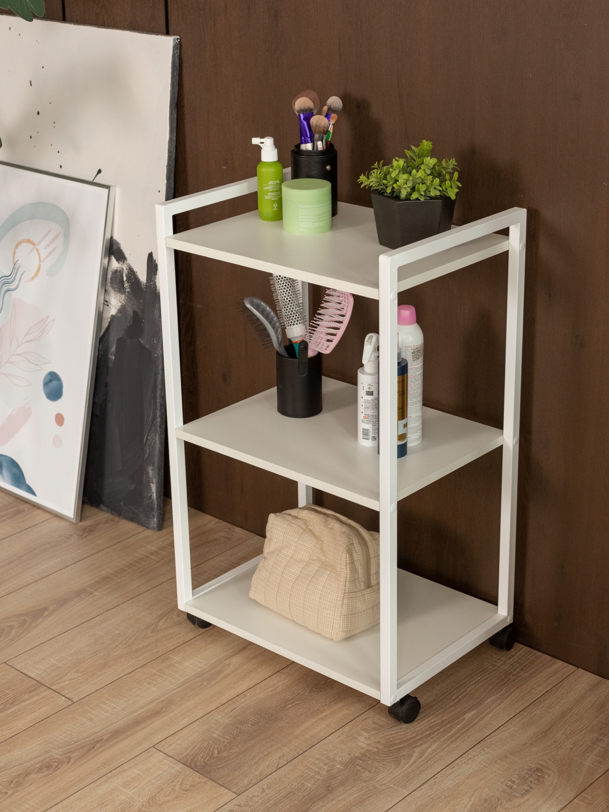 Этажерка на колесиках — неотъемлемый атрибут в кабинете каждого уважающего себя мастера из бьюти-сферы. Стеллаж позволяет рационально организовывать рабочее пространство благодаря трем вместительным полкам. Косметологическая этажерка оснащена колесиками, с помощью которых можно регулировать ее высоту на неровной поверхности пола. Тележка-этажерка компактна и не занимает много места, поэтому можно легко и удобно разместить ее даже в небольшом кабинете. Она подходит в качестве тележки для парикмахера, массажиста, косметолога, мастера по маникюру, педикюру, шугарингу, ботоксу и как тумбочка для косметики. Стильный классический дизайн этажерки на колесах представлен в трех универсальных цветах — белом, черном и золотом. Мастера используют тележку для наращивания ресниц как дополнительный элемент домашнего интерьера: помещают ее на кухне для хранения специй, в спальне — для косметики, документов, игрушек, в гостиной — для книг, цветов. Для сборки этажерки не требуется специальных инструментов или навыков: вся информация есть в инструкции, поставляемой вместе с необходимыми комплектующими.
