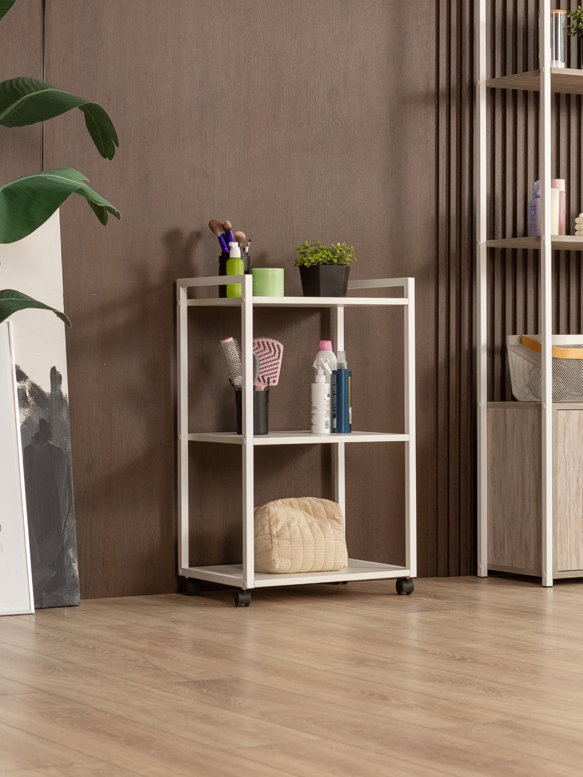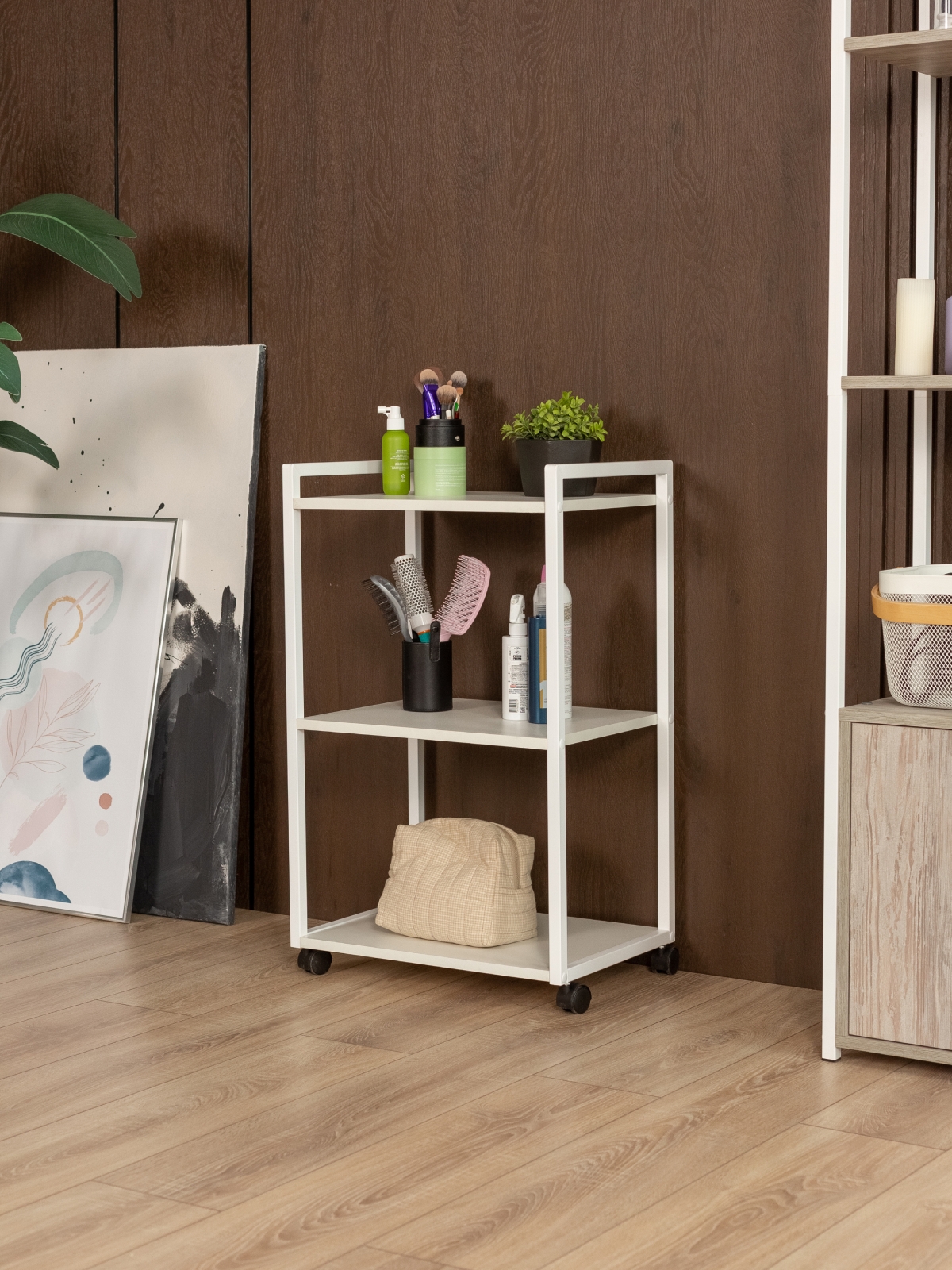Косметологическая тележка трехъярусная на колесиках Амур белый/белый