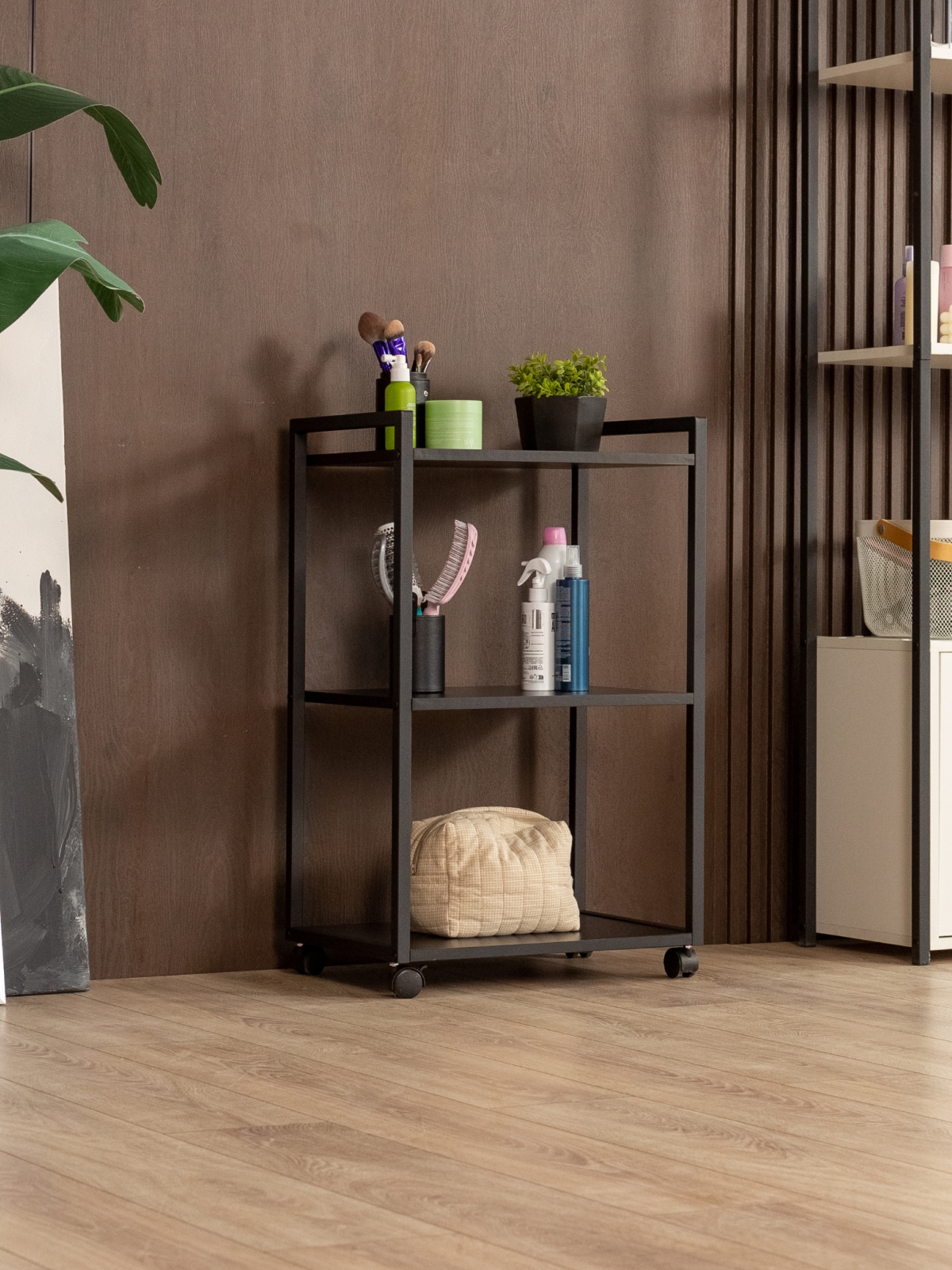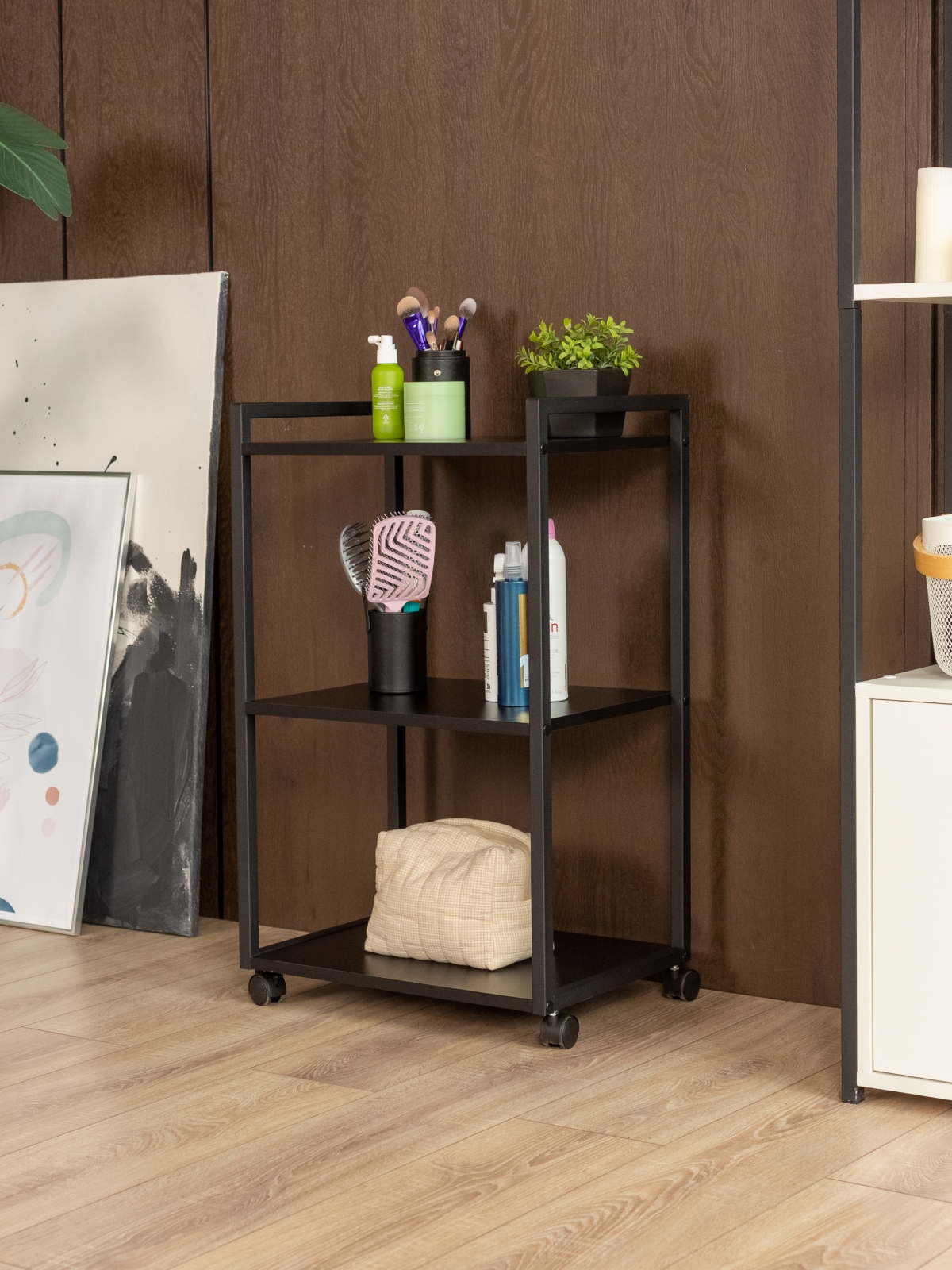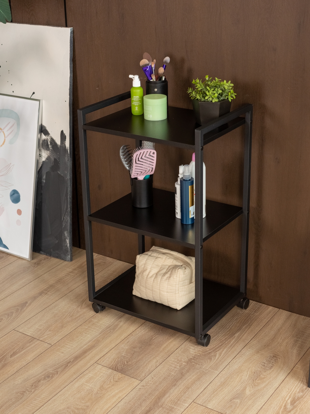 Косметологическая тележка трехъярусная на колесиках Амур чёрный/черный