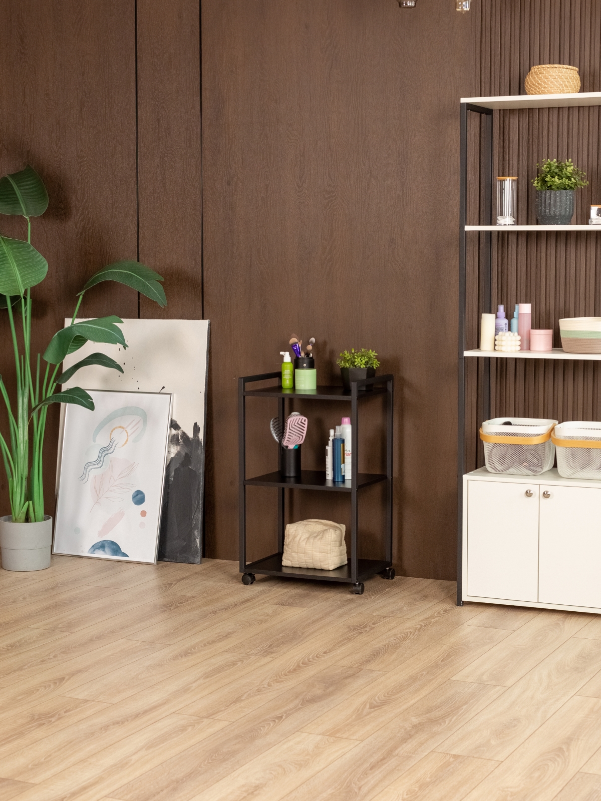 Этажерка на колесиках — неотъемлемый атрибут в кабинете каждого уважающего себя мастера из бьюти-сферы. Стеллаж позволяет рационально организовывать рабочее пространство благодаря трем вместительным полкам. Косметологическая этажерка оснащена колесиками, с помощью которых можно регулировать ее высоту на неровной поверхности пола. Тележка-этажерка компактна и не занимает много места, поэтому можно легко и удобно разместить ее даже в небольшом кабинете. Она подходит в качестве тележки для парикмахера, массажиста, косметолога, мастера по маникюру, педикюру, шугарингу, ботоксу и как тумбочка для косметики. Стильный классический дизайн этажерки на колесах представлен в трех универсальных цветах — белом, черном и золотом. Мастера используют тележку для наращивания ресниц как дополнительный элемент домашнего интерьера: помещают ее на кухне для хранения специй, в спальне — для косметики, документов, игрушек, в гостиной — для книг, цветов. Для сборки этажерки не требуется специальных инструментов или навыков: вся информация есть в инструкции, поставляемой вместе с необходимыми комплектующими.