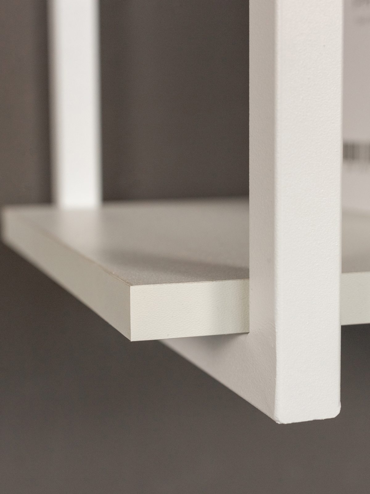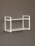 Две вместительные открытые полки выполнены из прочного ЛДСП толщиной 16 мм, обладающего износостойкостью и легкостью в уходе. Полки имеют аккуратную ПВХ-кромку, которая защищает края от повреждений и придает изделию завершенный внешний вид. Надежный металлический каркас окрашен порошковой краской в белый цвет, обеспечивая долговечность и устойчивость к царапинам и внешним воздействиям. Оттенок привносит в пространство нотки индустриального минимализма, а также визуально облегчает конструкцию, делая ее легкой и воздушной.