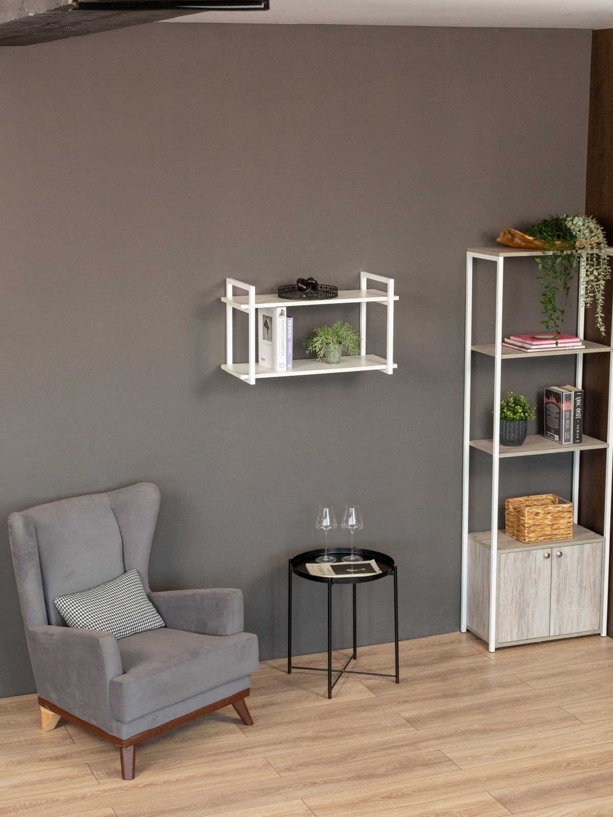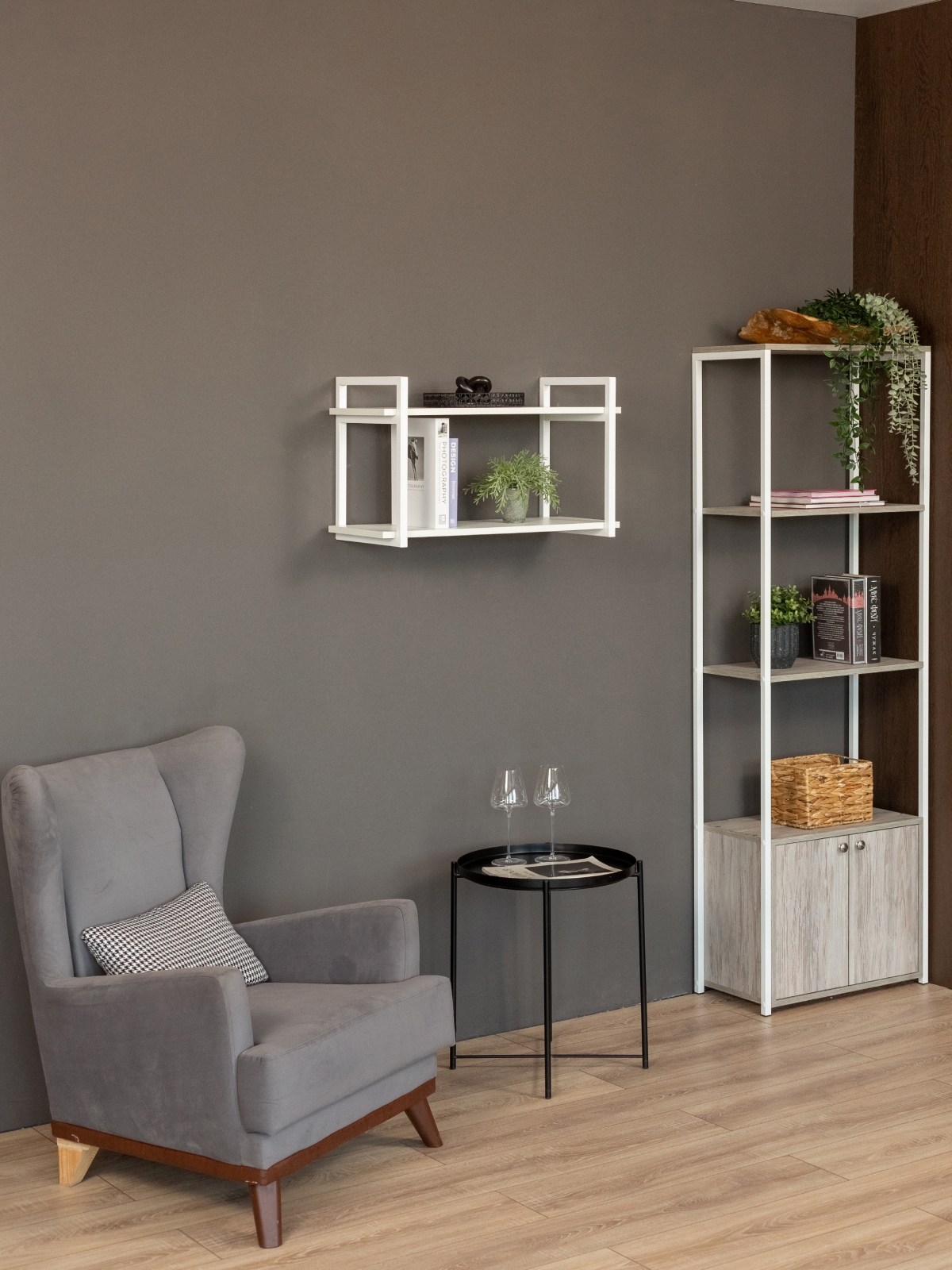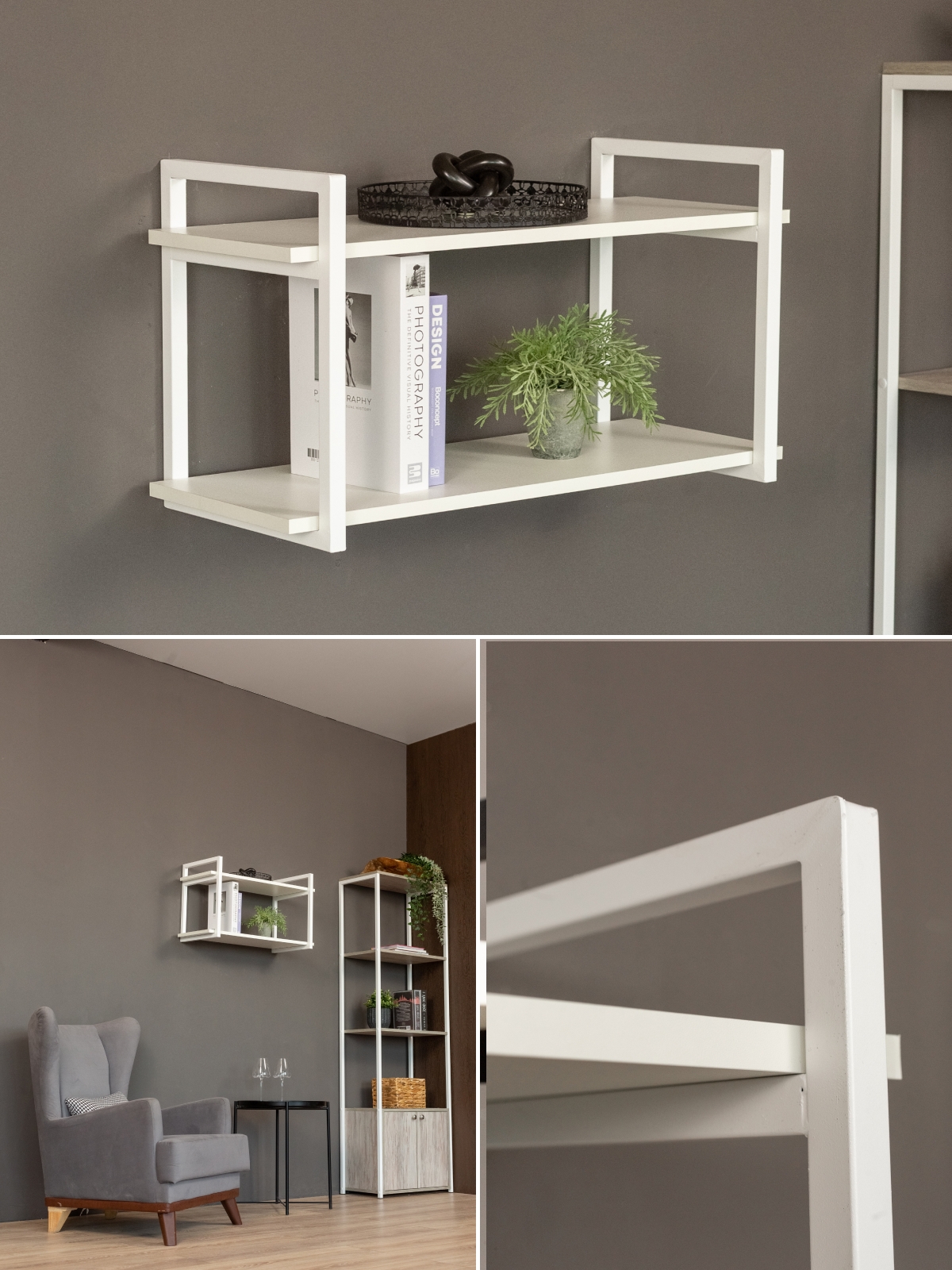 Настенная полка «Онега» может стать частью функциональных мебельных ансамблей, где сочетаются разные элементы лофта — от металлических стеллажей и консольных столиков до открытых шкафов и модульных систем хранения. Она легко интегрируется в интерьер с мягкой мебелью светлых оттенков, текстилем из натуральных тканей и светильниками в индустриальном стиле. Благодаря своей универсальности «Онега» прекрасно работает как самостоятельный акцент, так и в комплексе с другими предметами, придавая комнате законченный и стильный вид.
