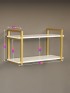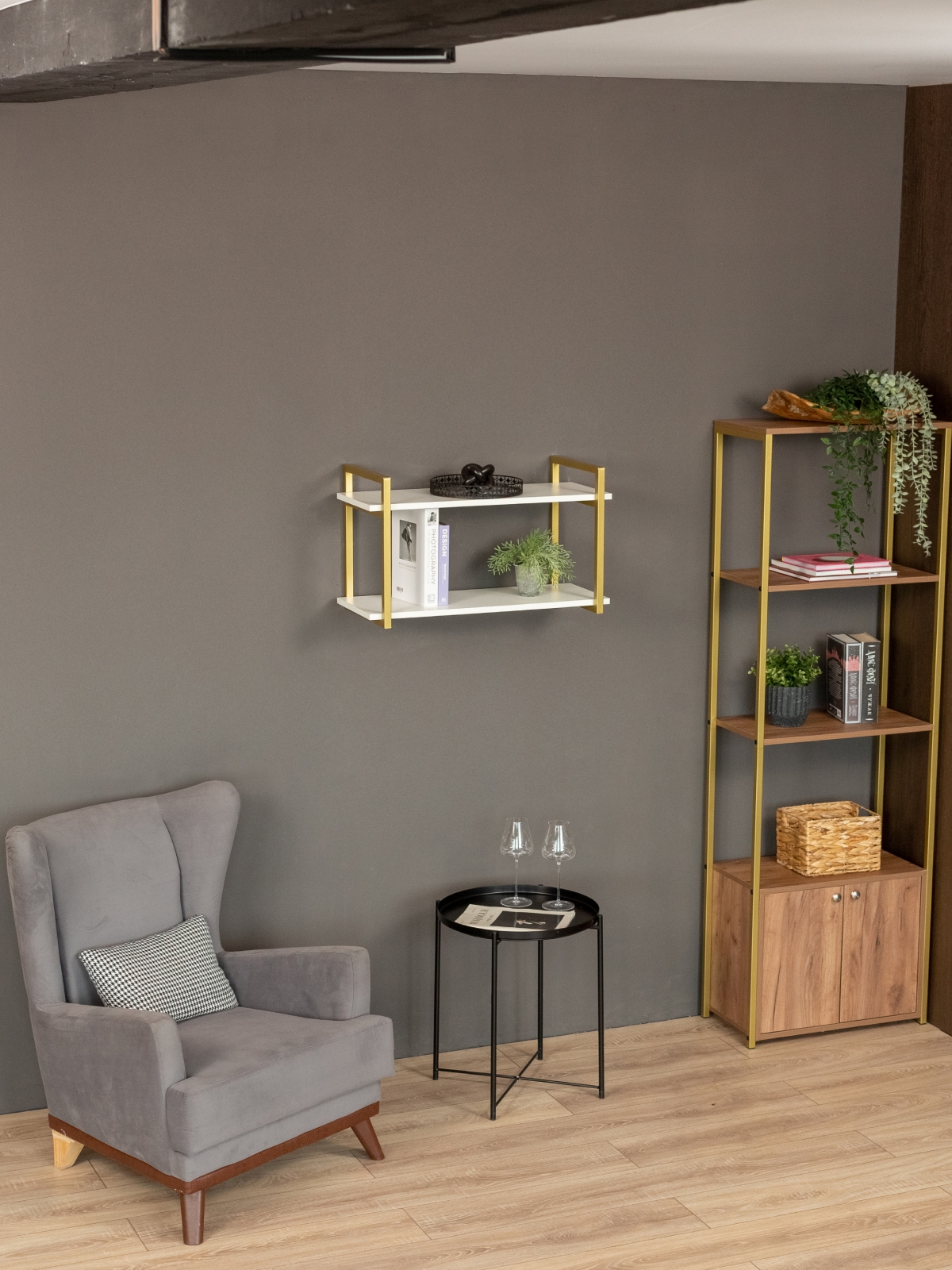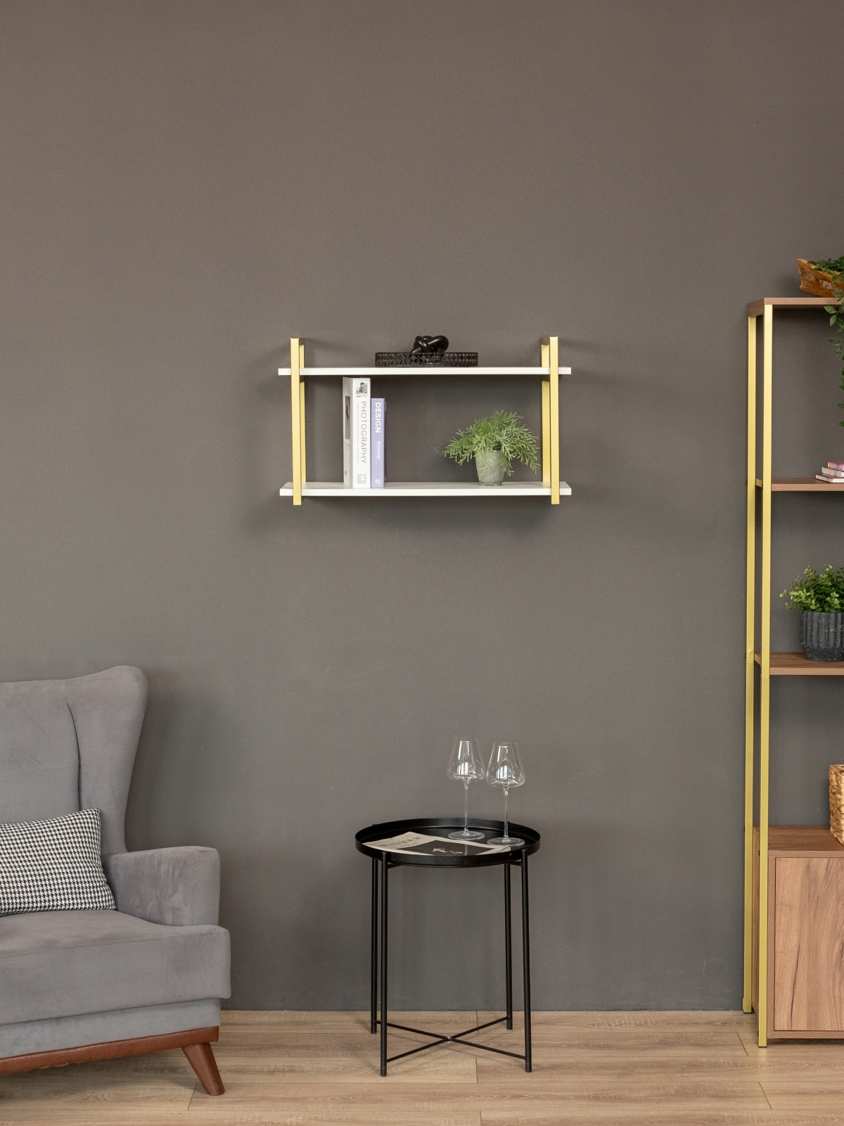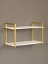Настенная полка «Онега» — акцентный элемент, который задает настроение пространству и подчеркивает вашу любовь к деталям. Эффектный золотой каркас из металла с деликатным блеском делает полку не только устойчивой, но и визуально легкой. Он смотрится особенно выигрышно на фоне нейтральных или темных стен, привлекая внимание и добавляя нотки шика, но не перегружая интерьер.