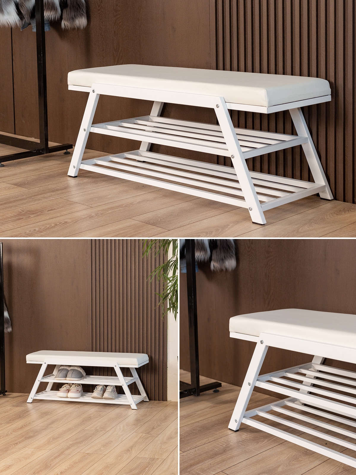 Полки расположены на оптимальной высоте, чтобы можно было разместить ботинки, туфли, сандалии, кроссовки. А мягкое сиденье, расположенное сверху, делает процесс переобувания комфортным. Вы можете присесть, не испытывая неудобства, особенно после долгого рабочего дня.