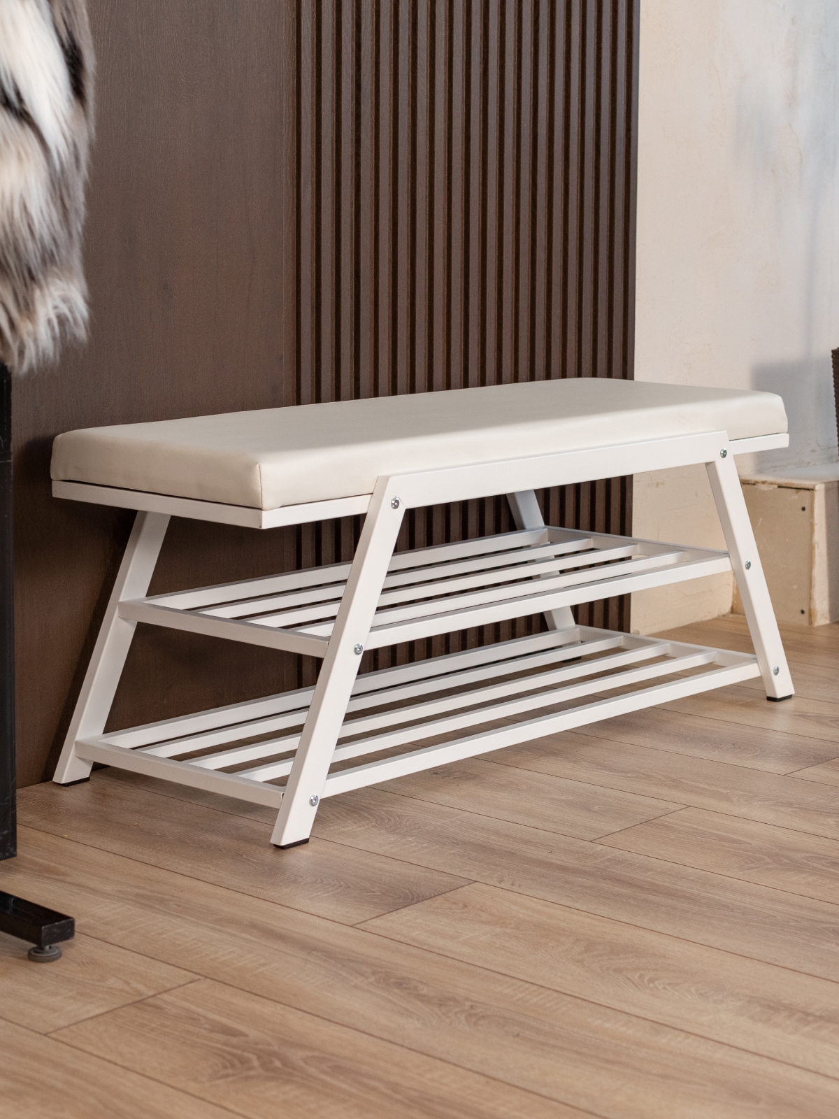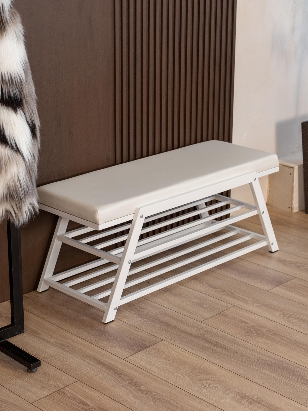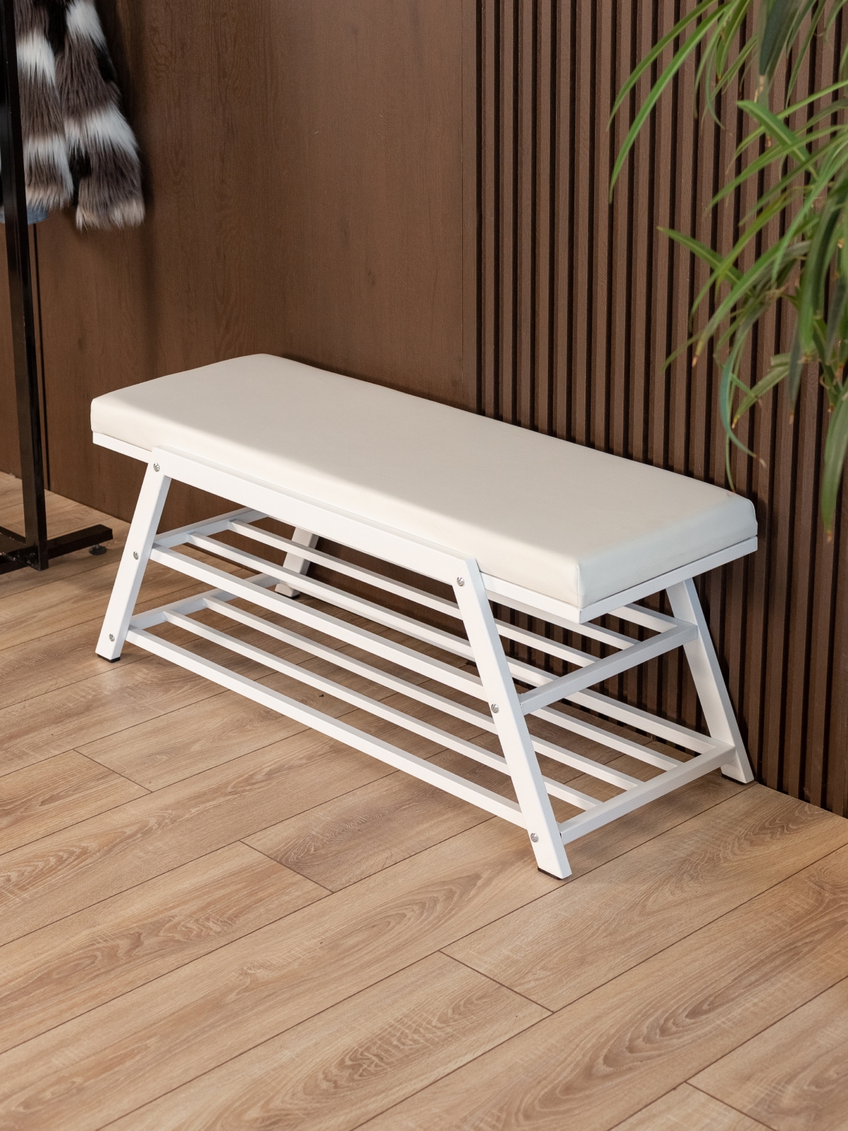Обувница с мягким сиденьем экокожа Акера белый/белый