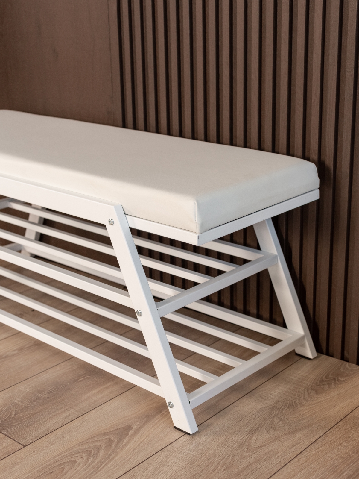 Обувница «Акера» — это гармоничное сочетание эстетики светлого лофта, функциональности и комфорта. Модель разработана для тех, кто ценит строгие линии, свежие оттенки и продуманные детали. Белый металлический каркас делает изделие особенно легким визуально, а мягкое сиденье — удобным в повседневном использовании. Это именно тот элемент, который не просто выполняет практическую функцию хранения обуви, но и украшает пространство, придавая ему аккуратность и уют.