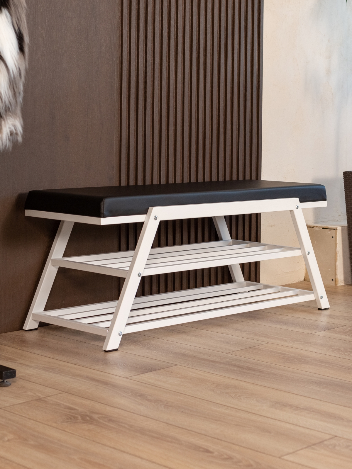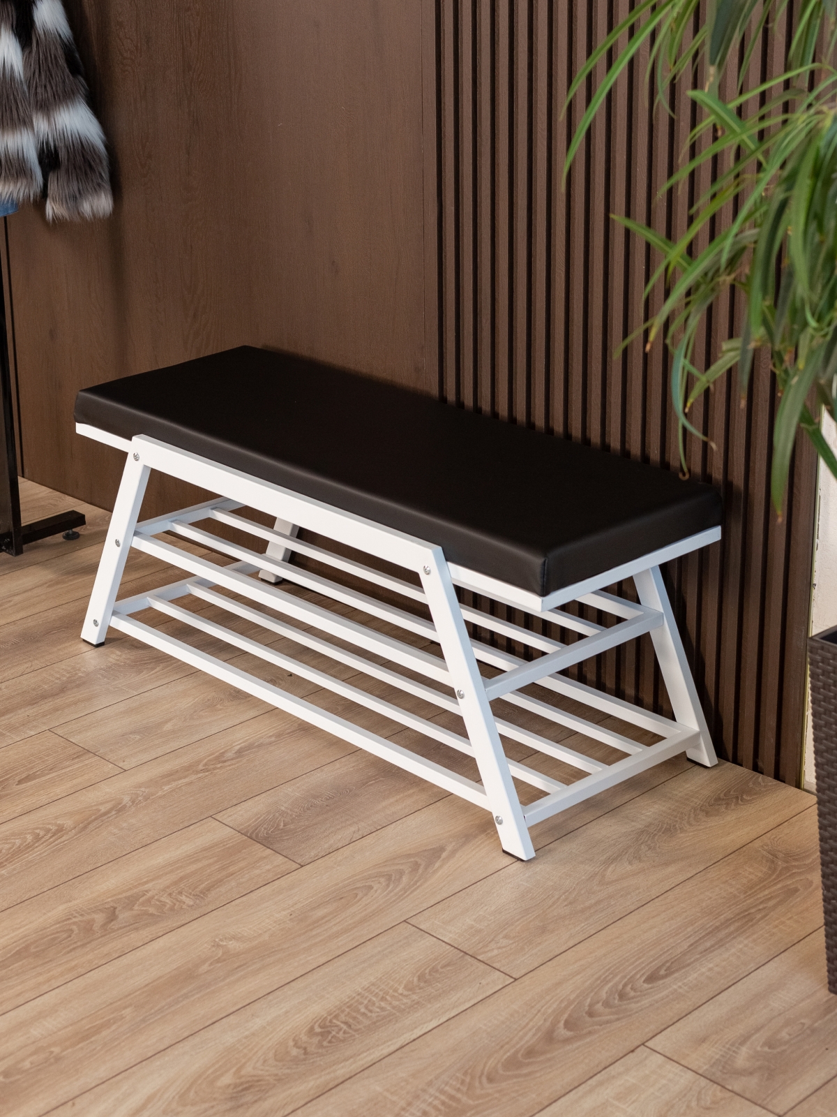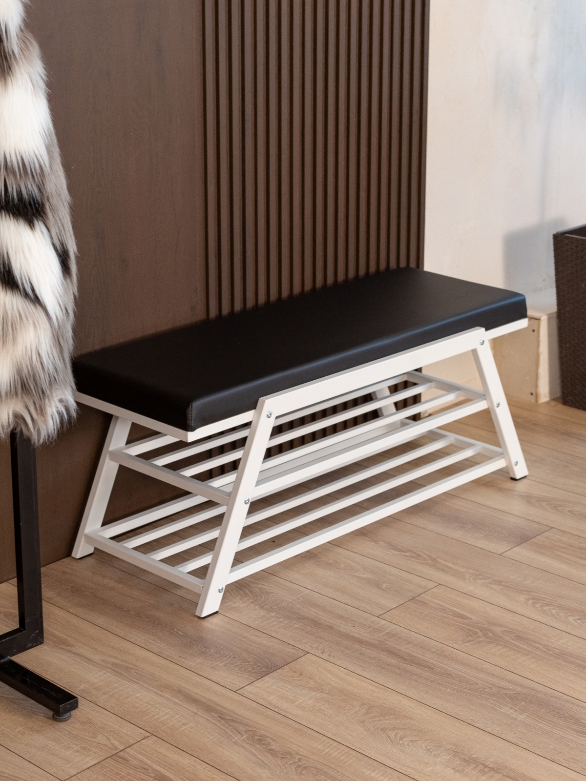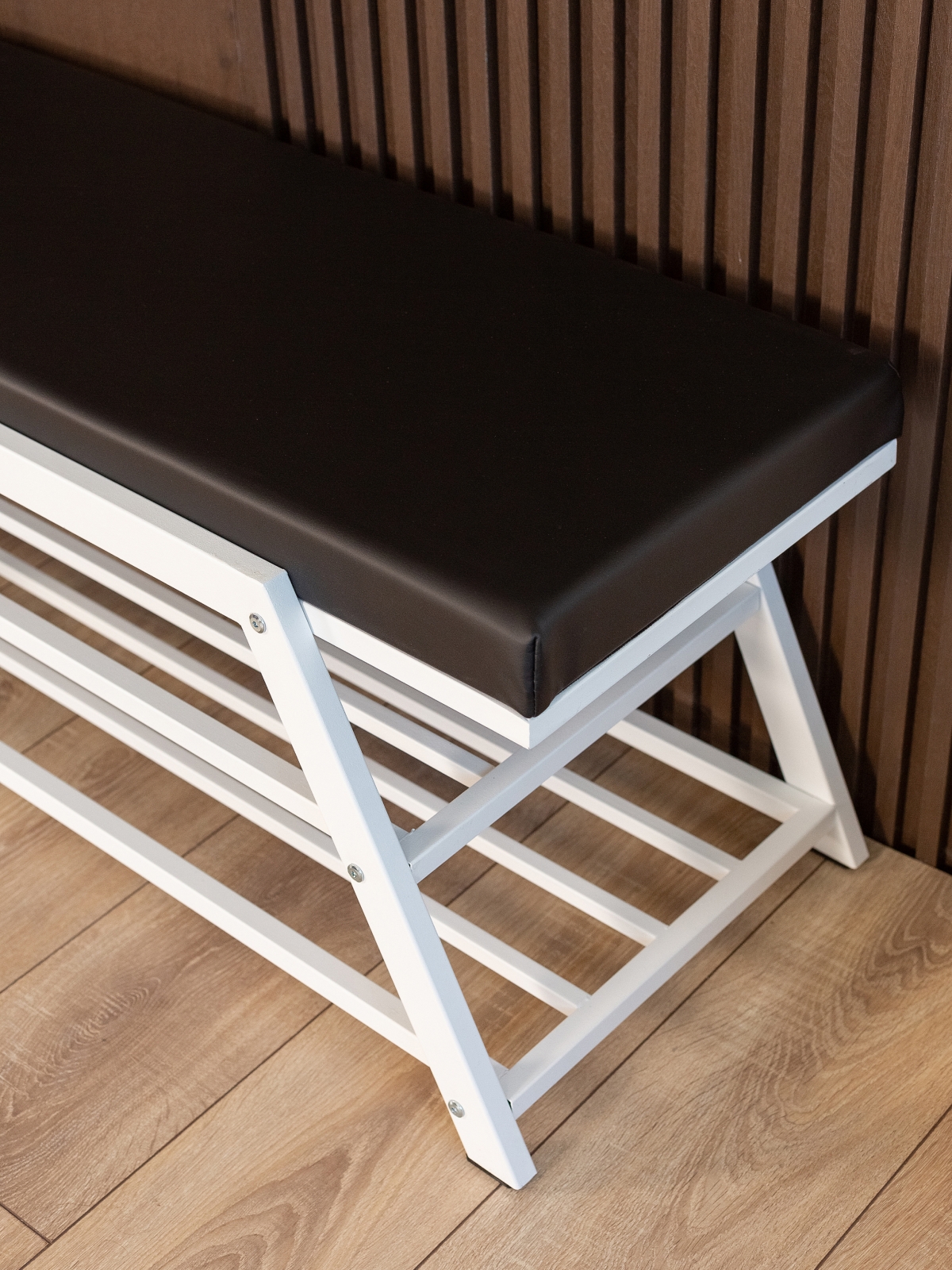 Обувница с мягким сиденьем экокожа Акера белый/черный