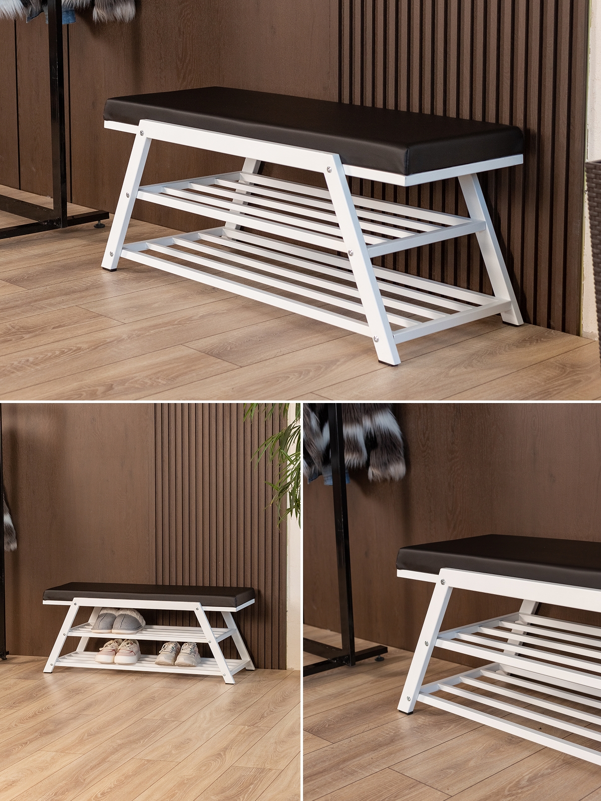 Полки расположены на оптимальной высоте, чтобы можно было разместить ботинки, туфли, сандалии, кроссовки. А мягкое сиденье, расположенное сверху, делает процесс переобувания комфортным. Вы можете присесть, не испытывая неудобства, особенно после долгого рабочего дня.