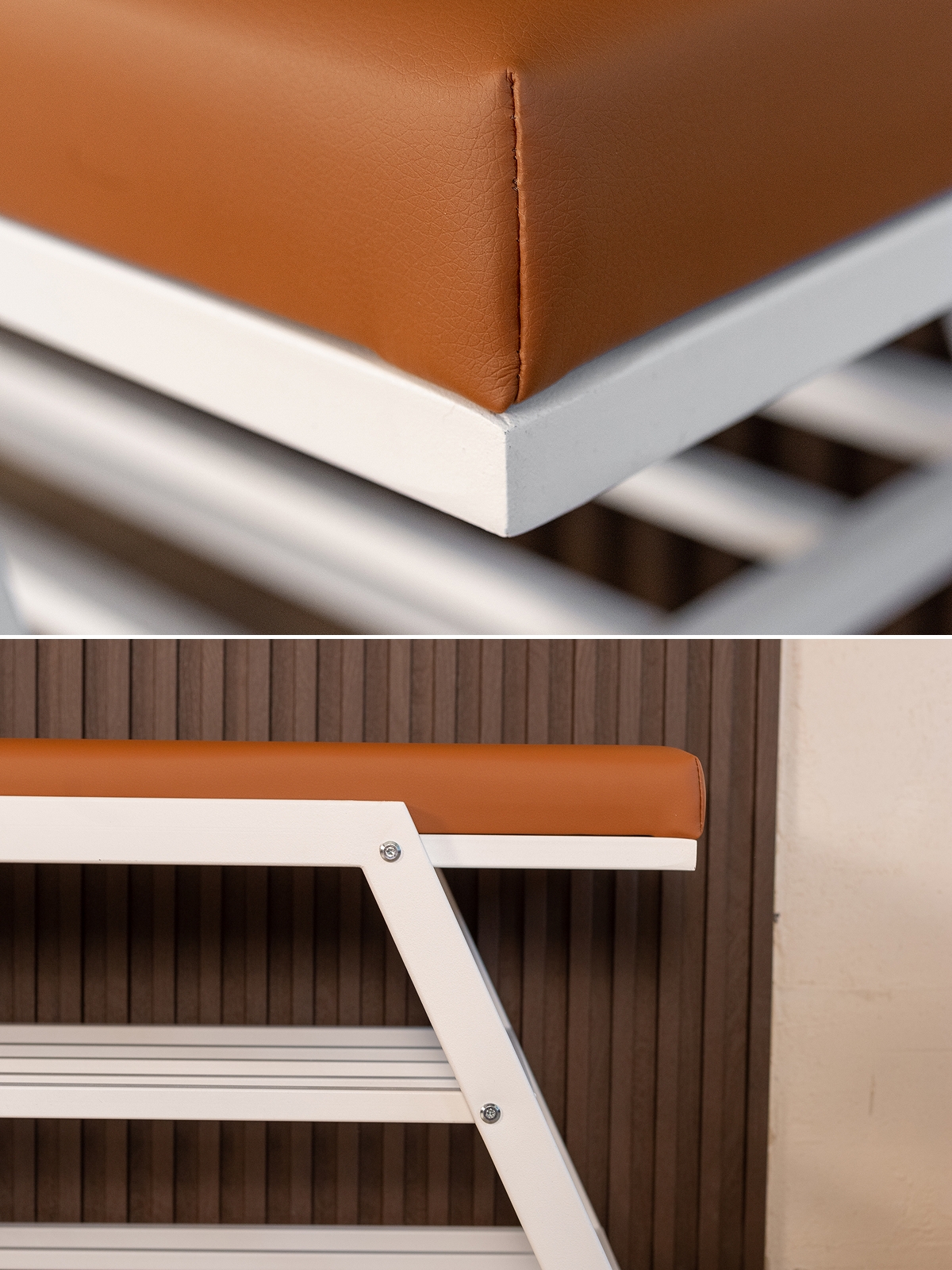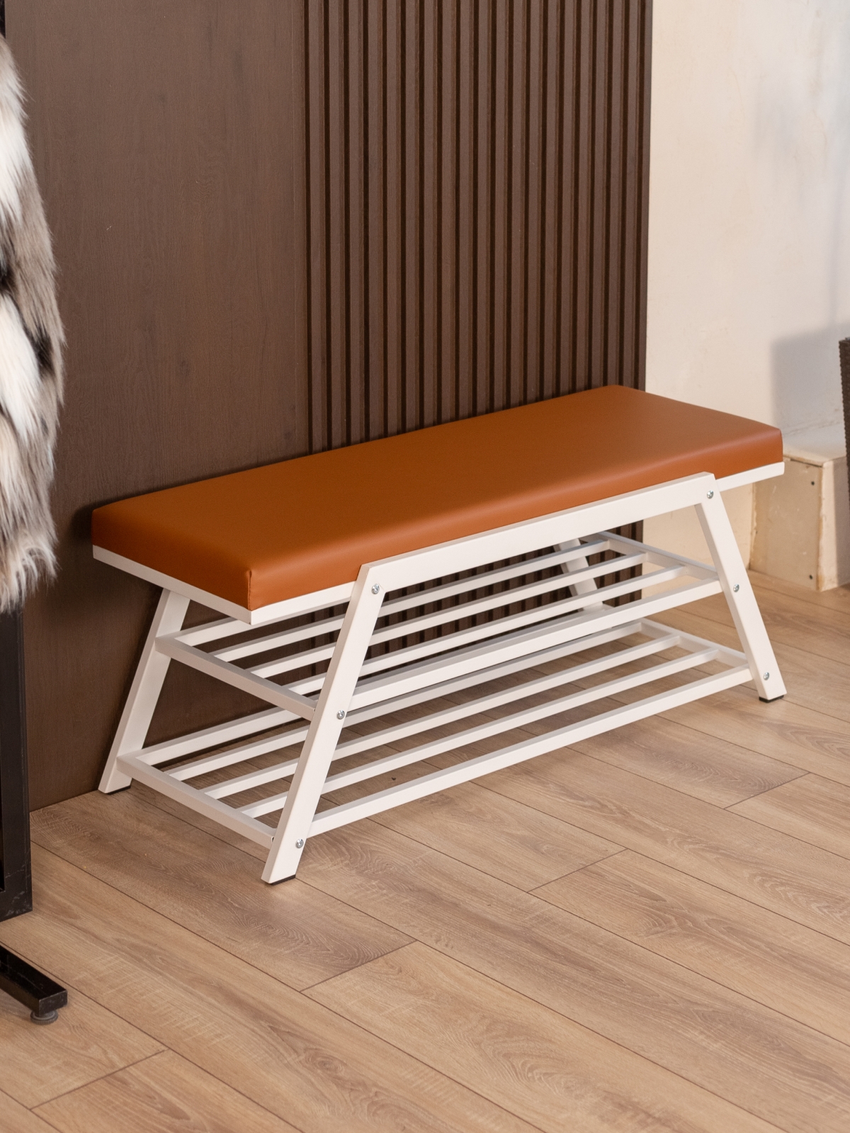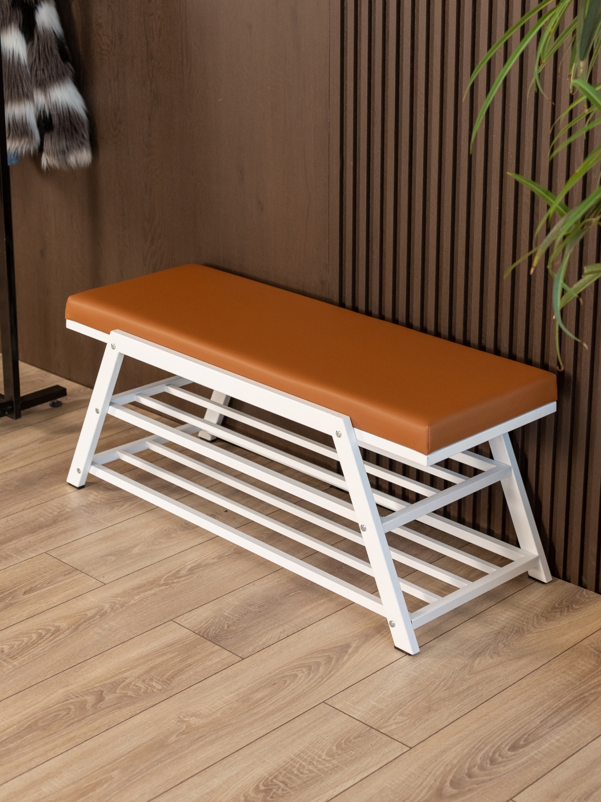 Обувница с мягким сиденьем экокожа Акера белый/коричневый