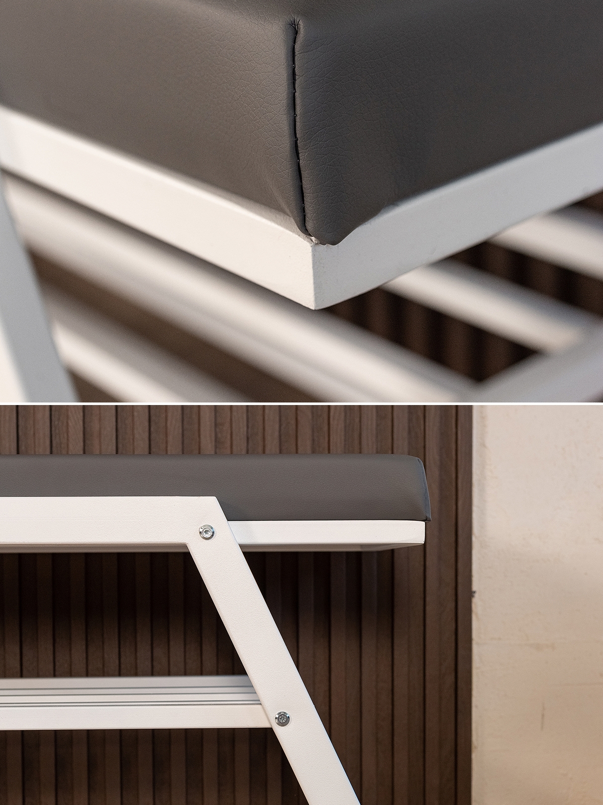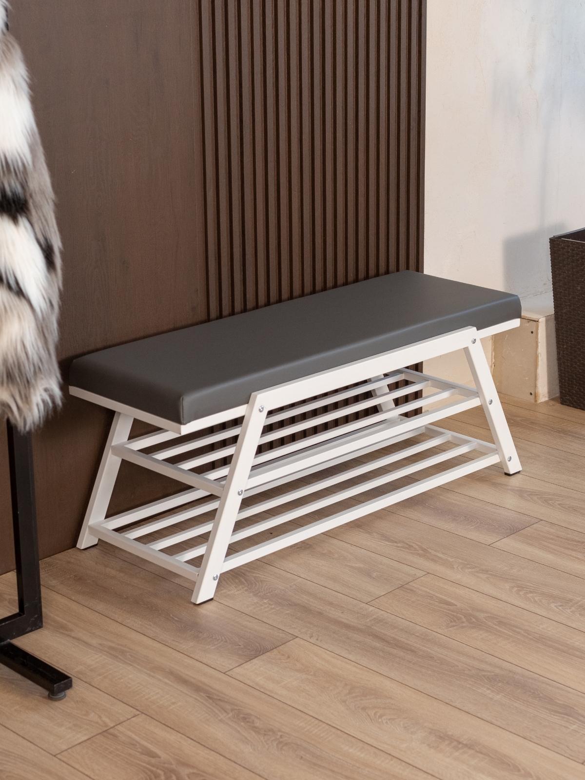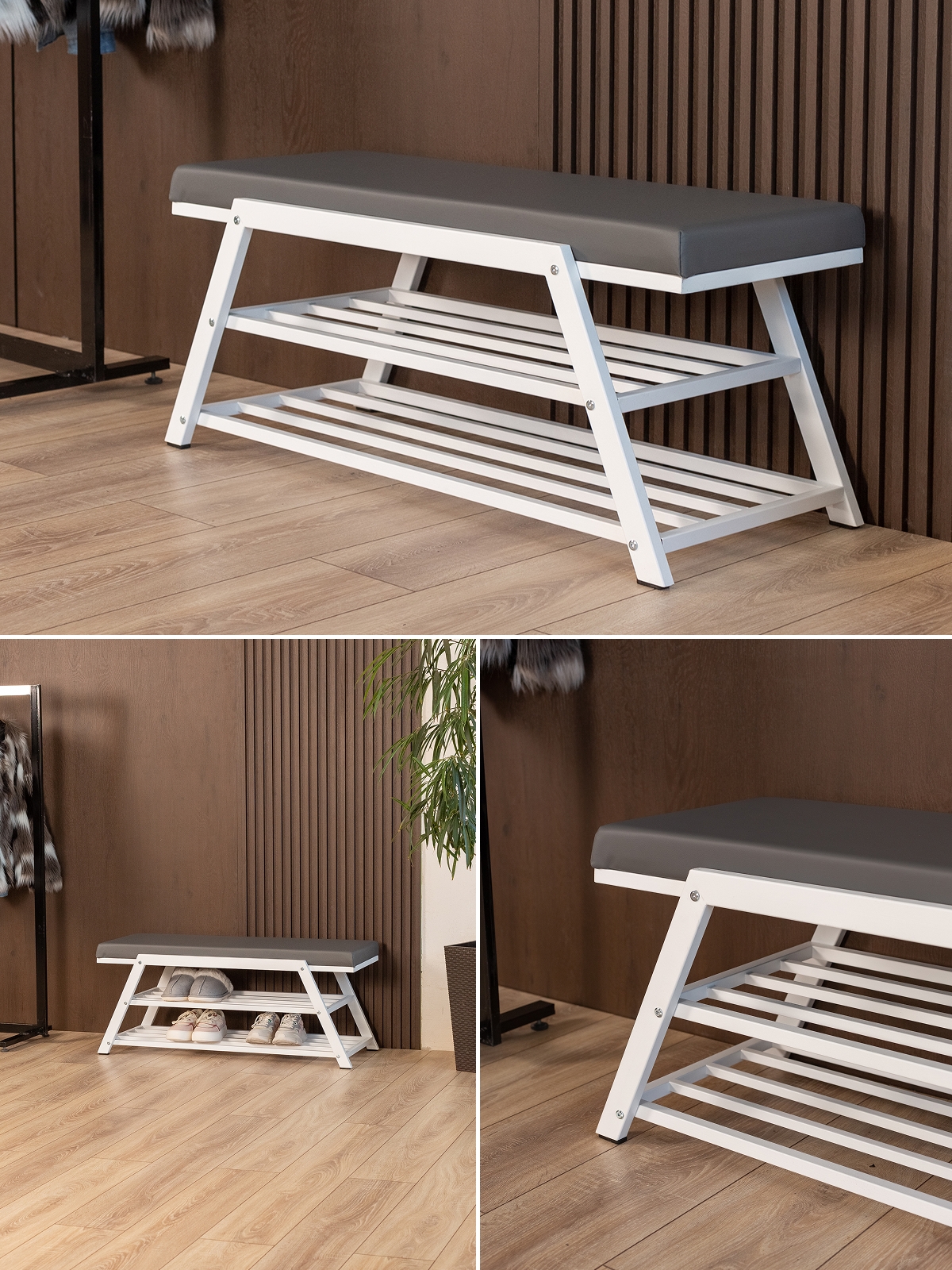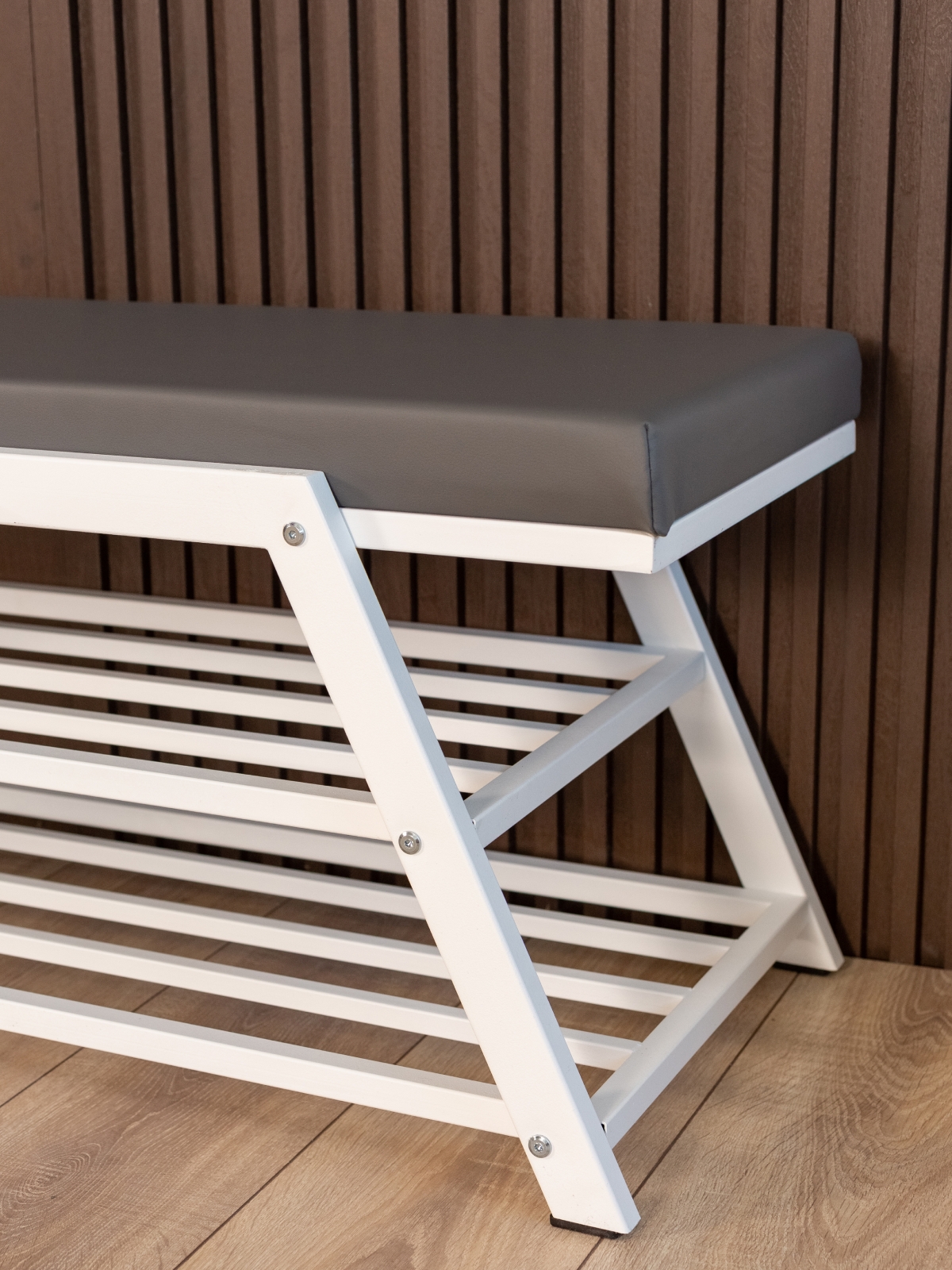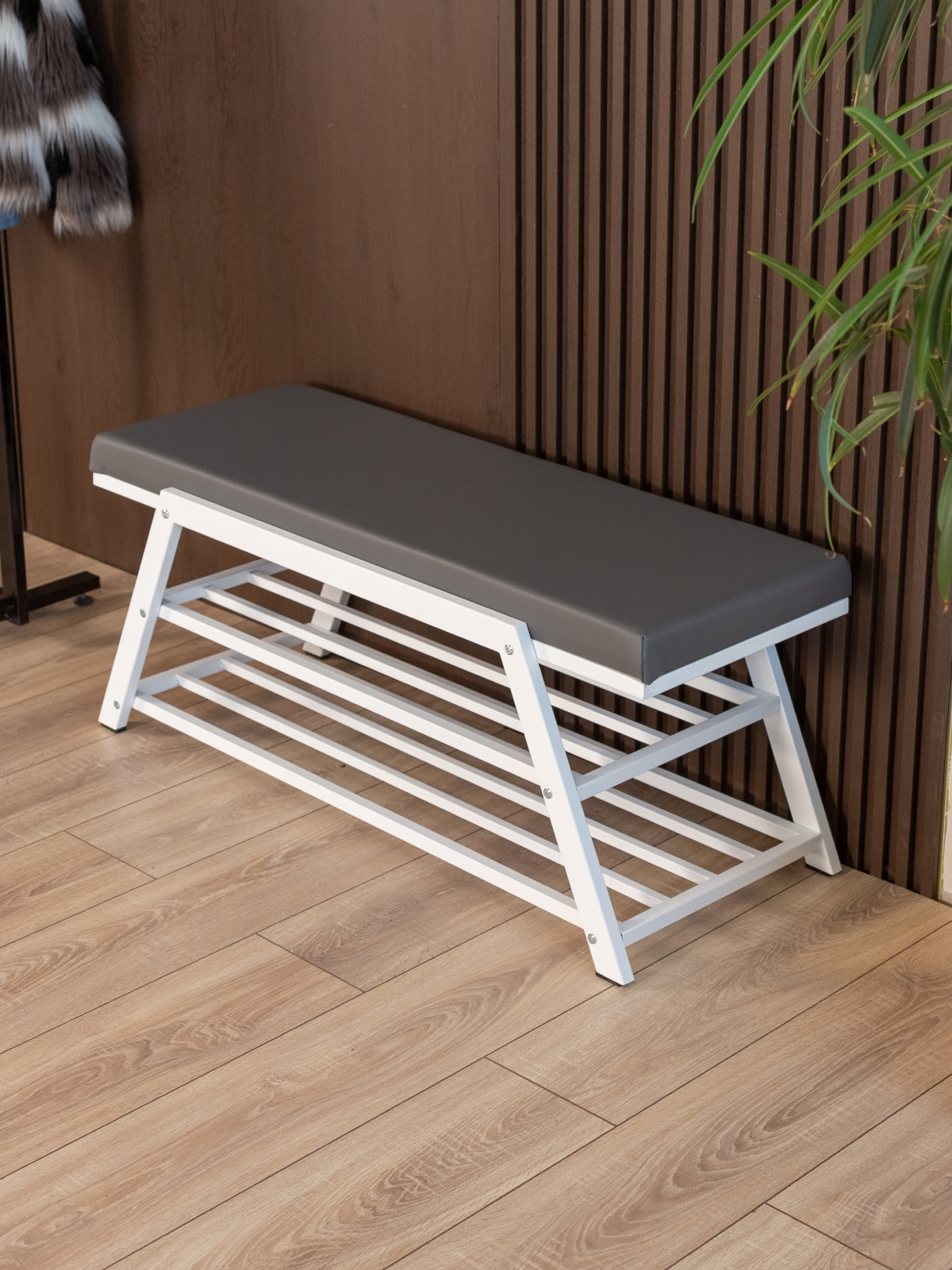 Обувница с мягким сиденьем экокожа Акера белый/серый