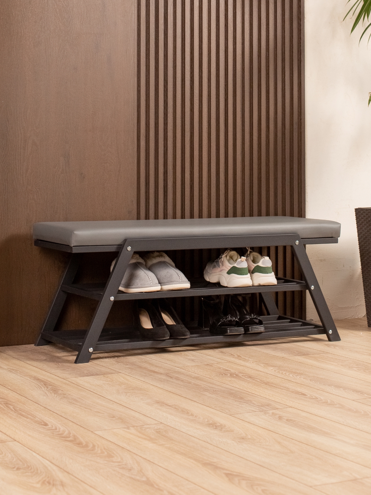 Обувница с мягким сиденьем экокожа Акера черный/серый