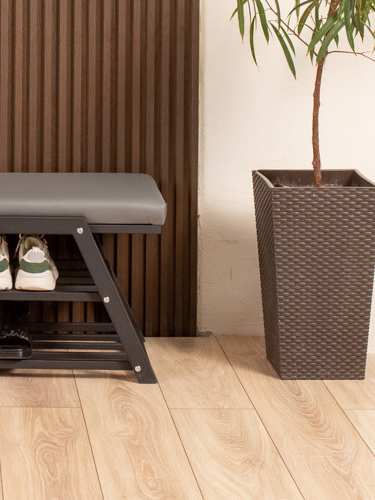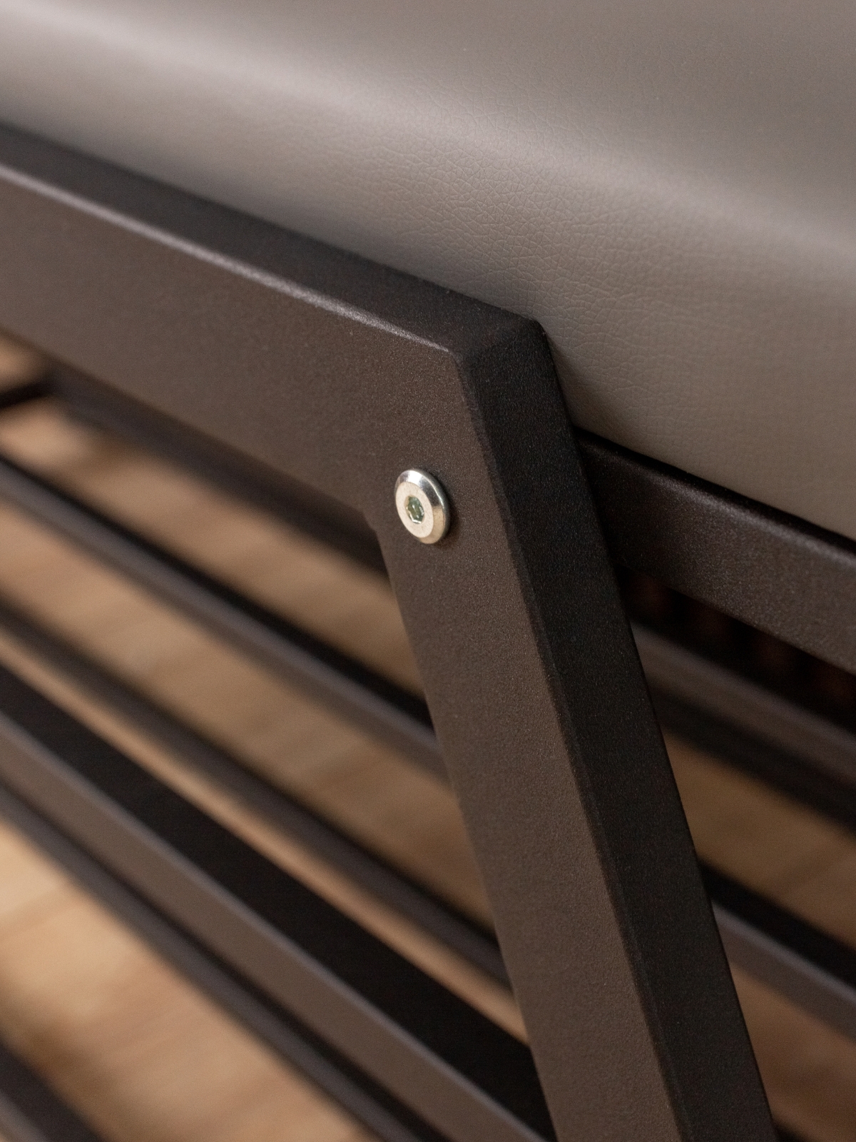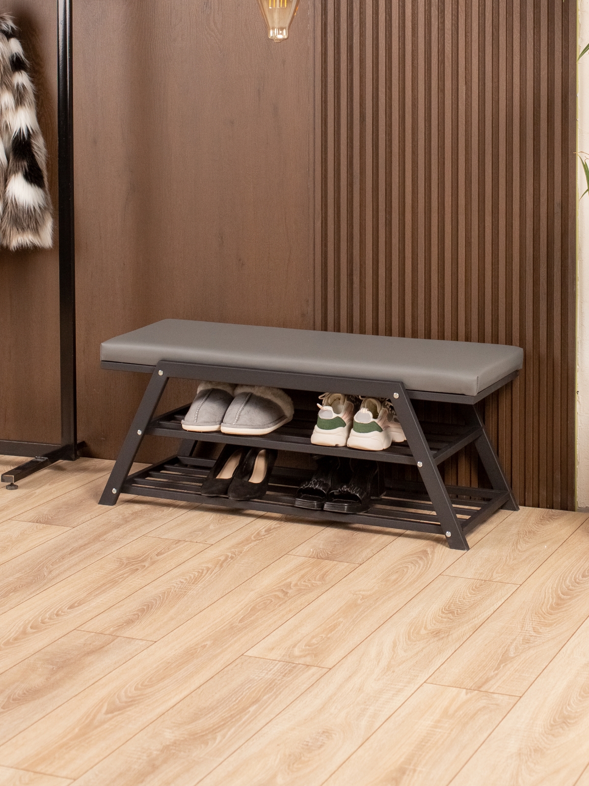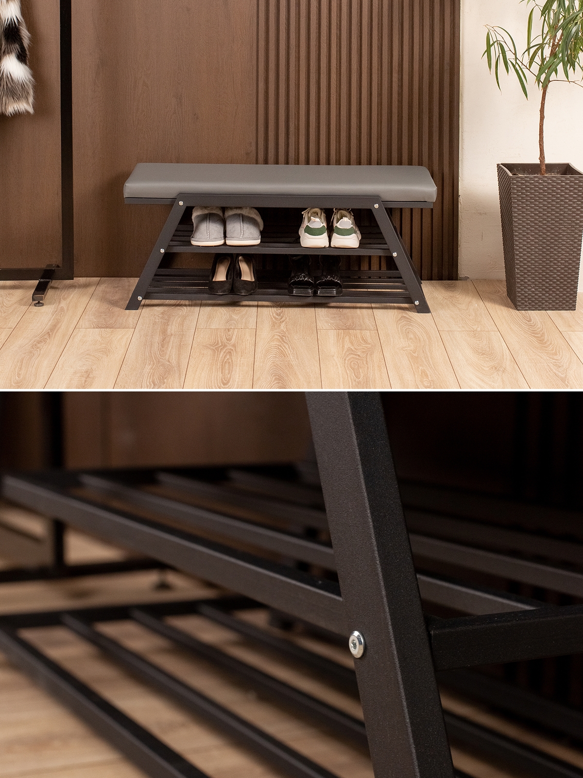 Обувница «Акера» сочетает в себе две ключевые функции: место для хранения обуви и комфортное сиденье. Две полки из металла вмещают повседневные пары и позволяют удобно рассортировать обувь всей семьи. Полки легко очищаются и сохраняют опрятный внешний вид даже при активной эксплуатации. Мягкое сиденье над ними — приятный бонус для тех, кто предпочитает снимать и надевать обувь сидя. Оно эргономично, не продавливается со временем и обеспечивает комфортную посадку.