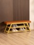 Обувница с мягким сиденьем экокожа Акера золотой/коричневый