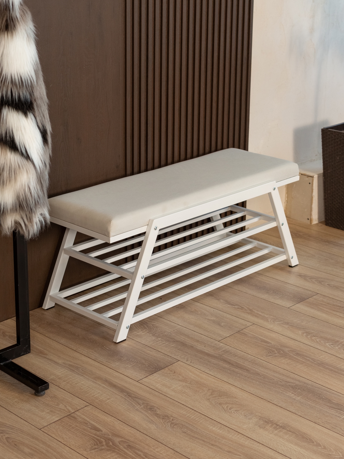 Обувница прекрасно вписывается в светлые квартиры, интерьеры в стиле скандинавский минимализм, современный лофт и уютные городские студии. Она гармонирует с пастельными оттенками, сочетается с древесными фактурами и мягким текстилем. В окружении светлого пола и стен «Акера» становится стильным, но ненавязчивым акцентом, поддерживая атмосферу уюта, чистоты и открытого пространства. Такая модель органично смотрится как в домашней прихожей, так и в гардеробной офиса, салона или шоурума.