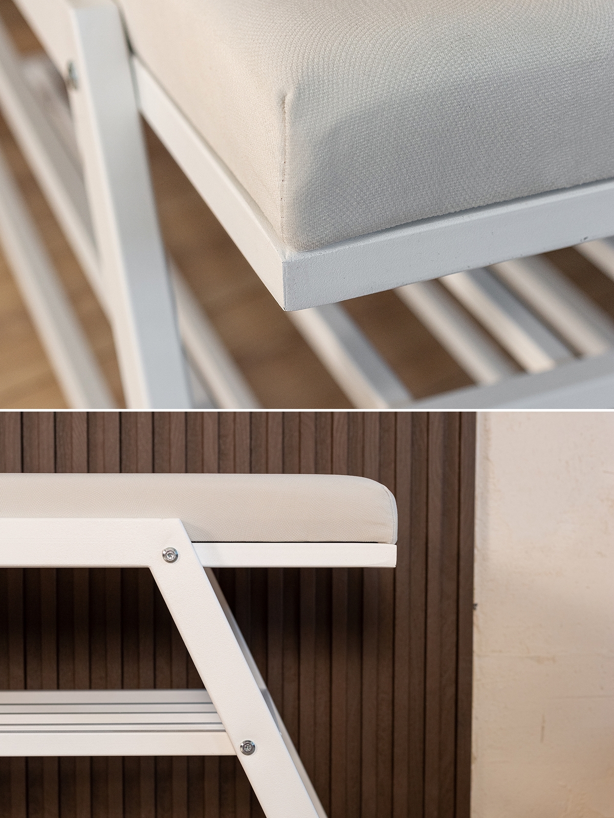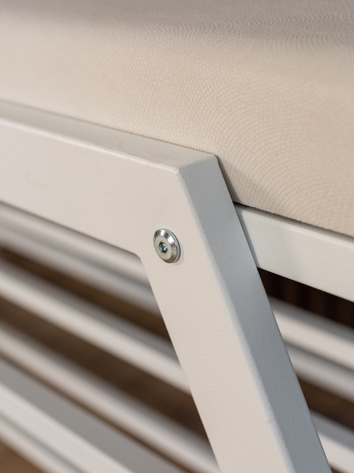 Каркас выполнен из прочного металла и окрашен полимерно-порошковой краской в чистый белый цвет. Это покрытие устойчиво к износу, не боится механических повреждений и сохраняет свежесть оттенка надолго. Белый металлический каркас — активная интерьерная деталь, подчеркивающая легкость и воздушность помещения. Изделие с таким каркасом отлично смотрится в интерьерах с преобладанием светлых тонов, помогает визуально расширить пространство и создает ощущение свежести и порядка.