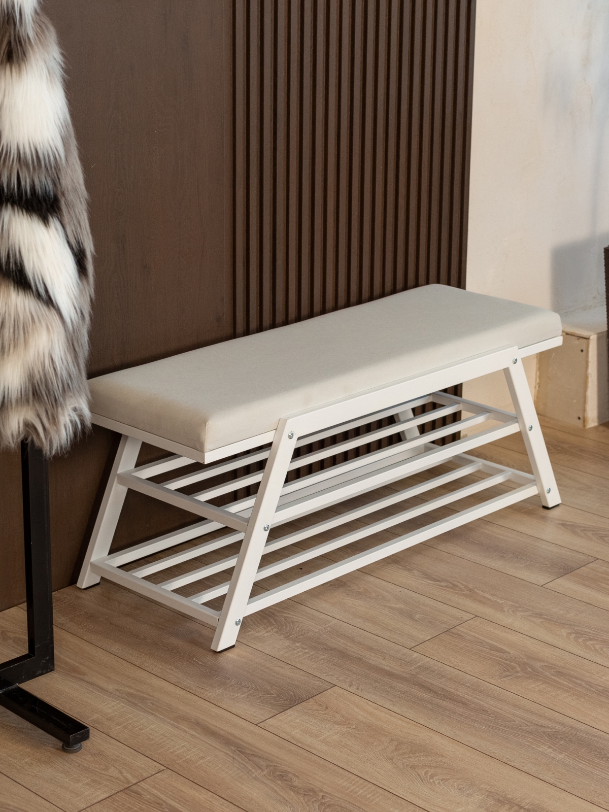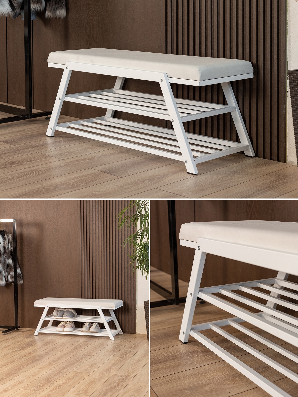Полки расположены на оптимальной высоте, чтобы можно было разместить ботинки, туфли, сандалии, кроссовки. А мягкое сиденье, расположенное сверху, делает процесс переобувания комфортным. Вы можете присесть, не испытывая неудобства, особенно после долгого рабочего дня.