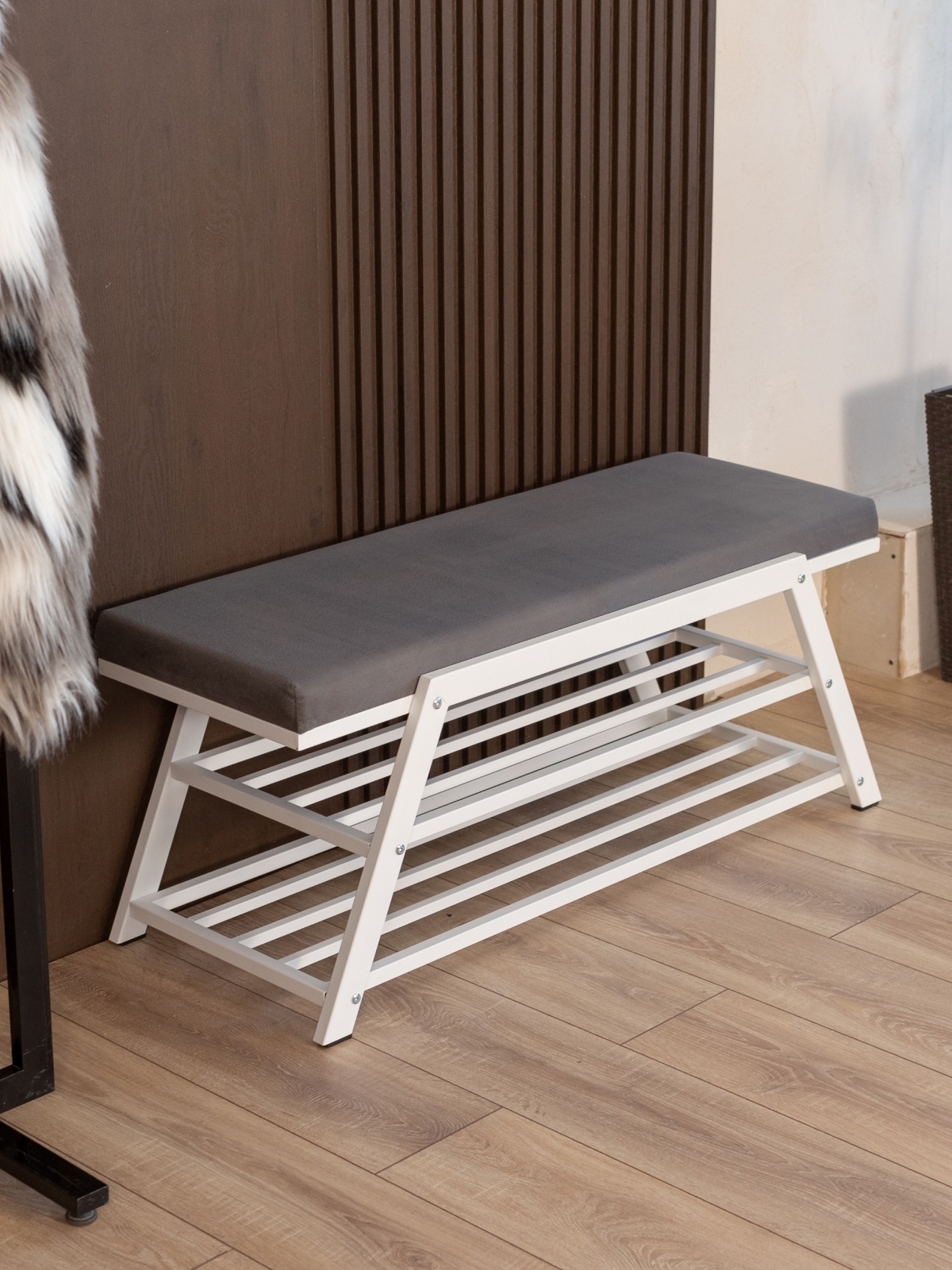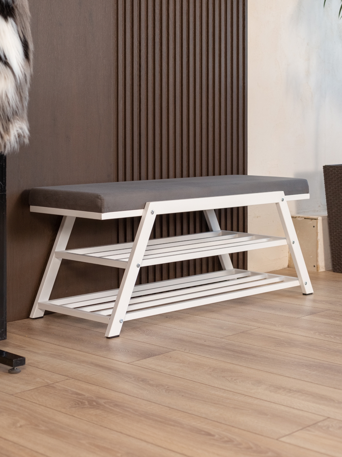 Обувница с мягким сиденьем велюр Акера белый/серый