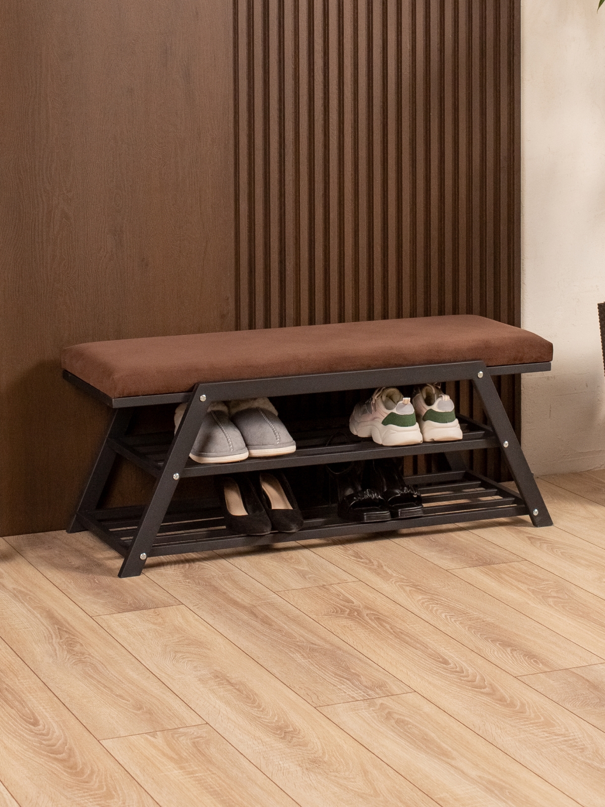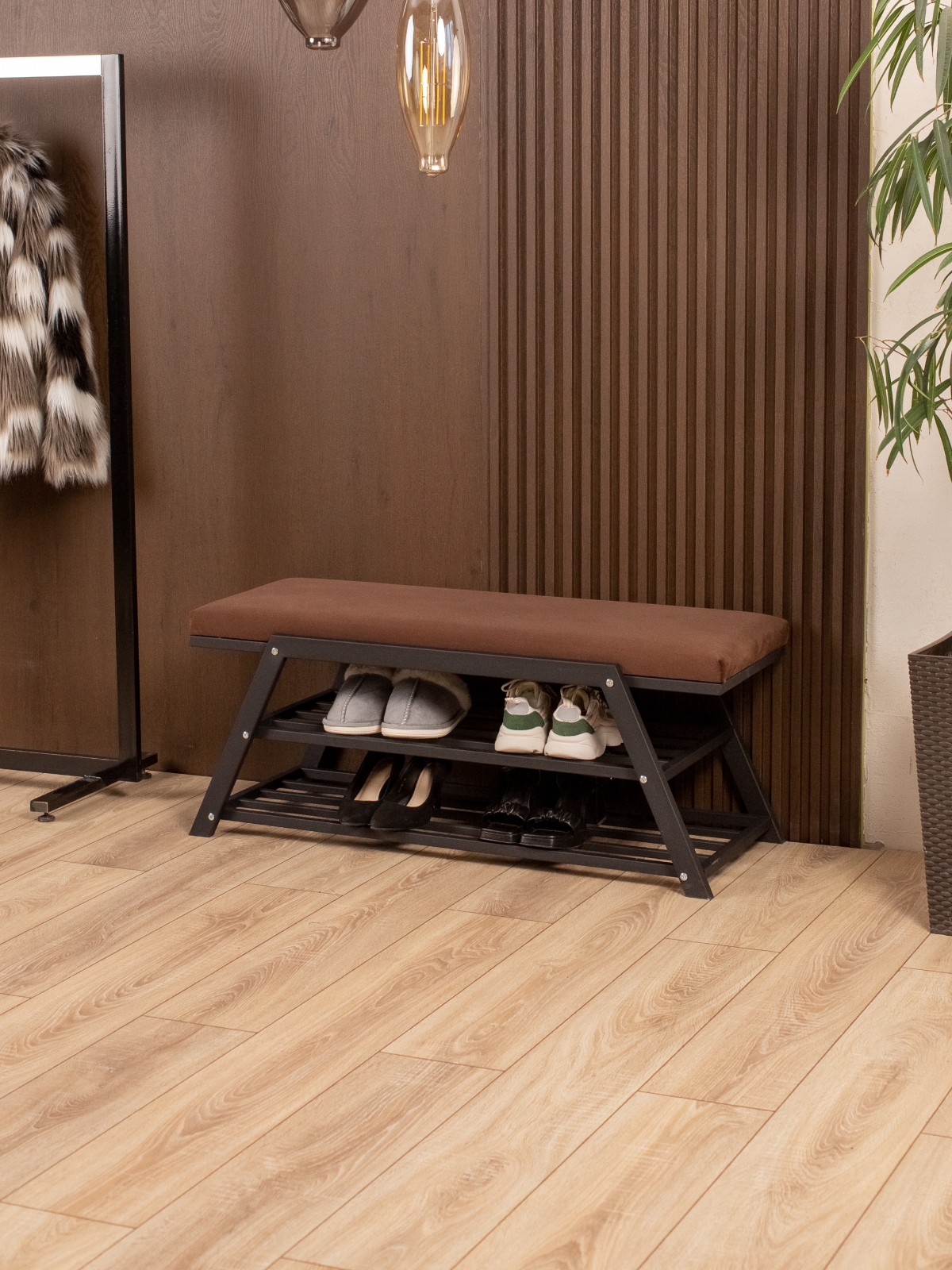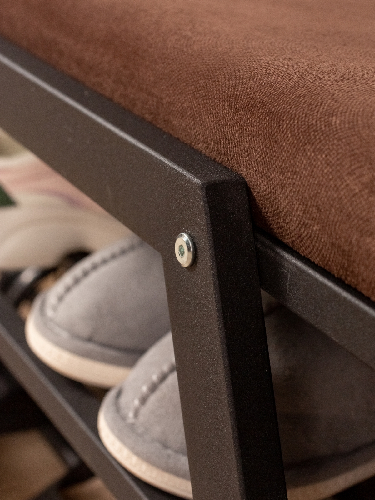 Обувница «Акера» сочетает в себе две ключевые функции: место для хранения обуви и комфортное сиденье. Две полки из металла вмещают повседневные пары и позволяют удобно рассортировать обувь всей семьи. Полки легко очищаются и сохраняют опрятный внешний вид даже при активной эксплуатации. Мягкое сиденье над ними — приятный бонус для тех, кто предпочитает снимать и надевать обувь сидя. Оно эргономично, не продавливается со временем и обеспечивает комфортную посадку.