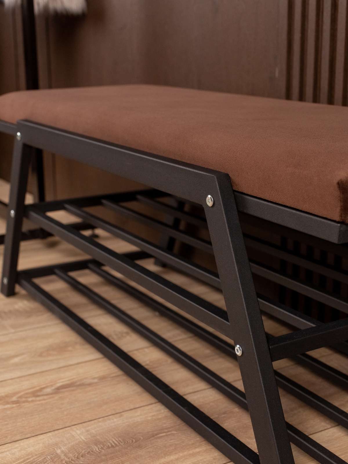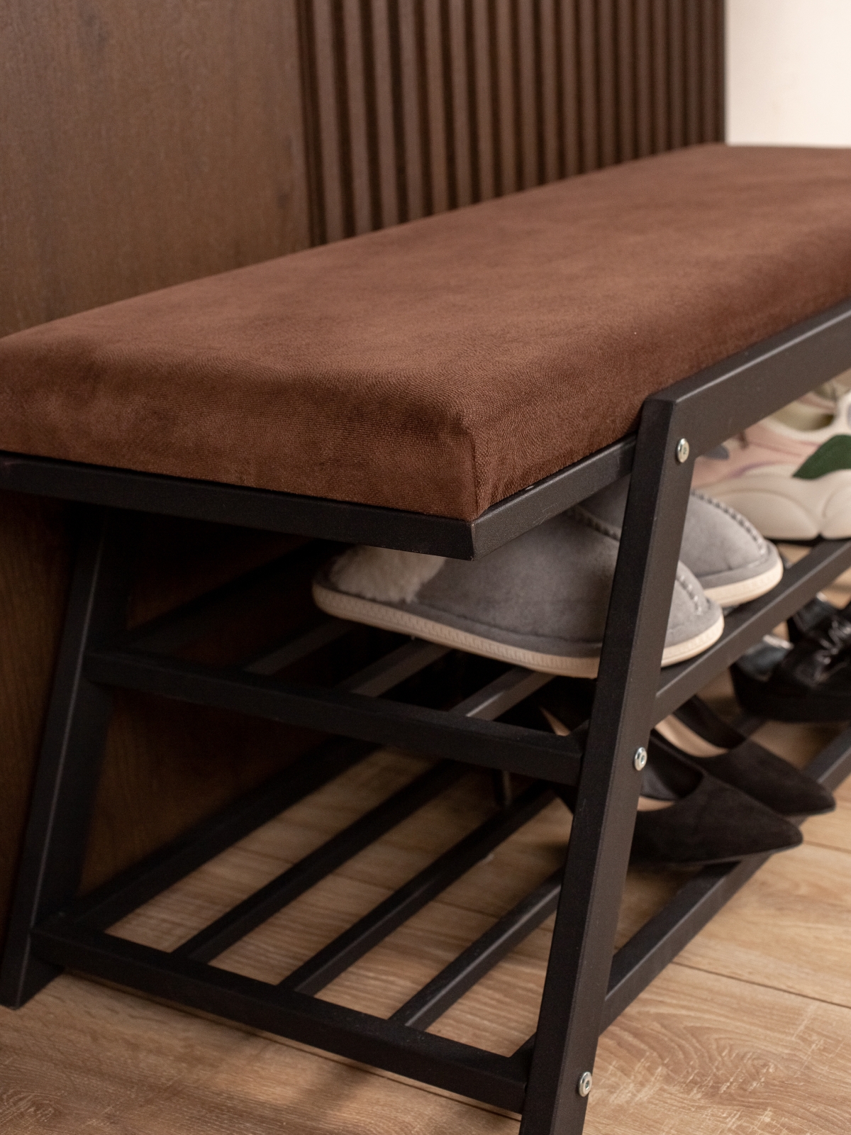 Обувница с мягким сиденьем велюр Акера черный/коричневый