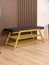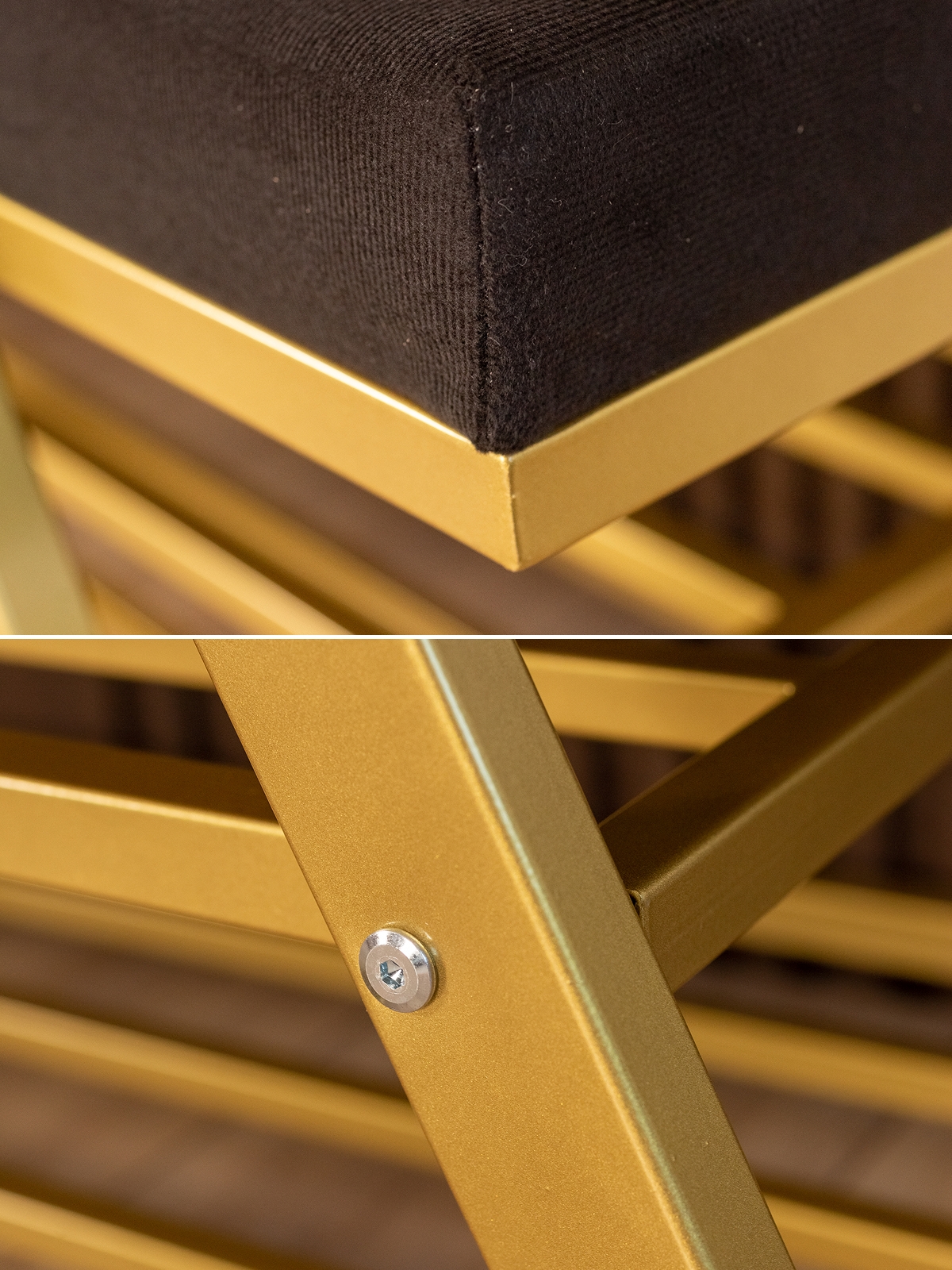 Обувница с мягким сиденьем велюр Акера золотой/черный