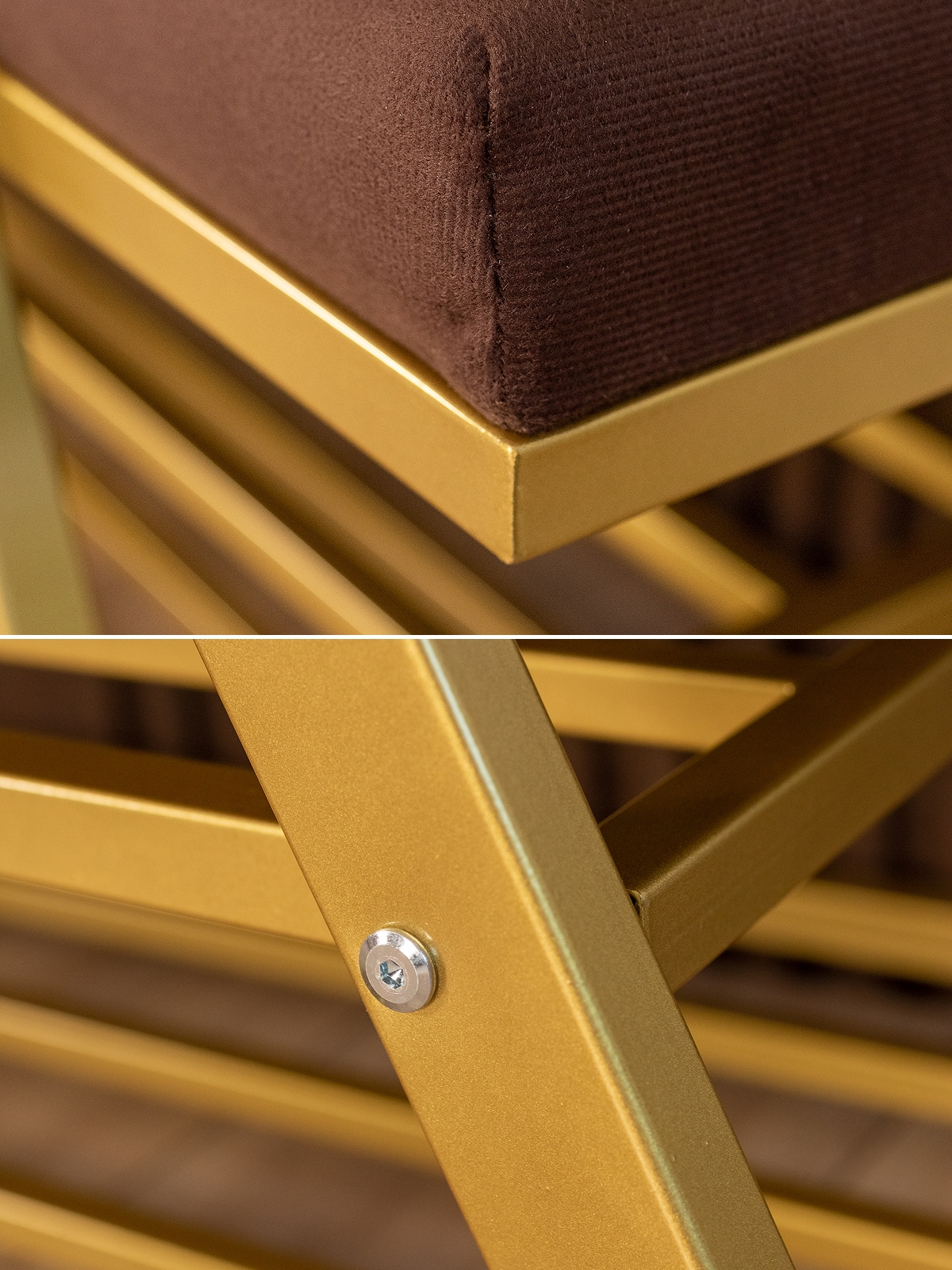 Обувница с мягким сиденьем велюр Акера золотой/коричневый