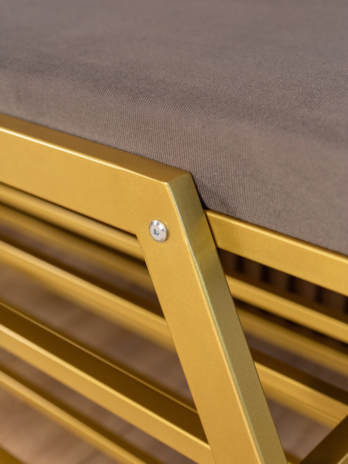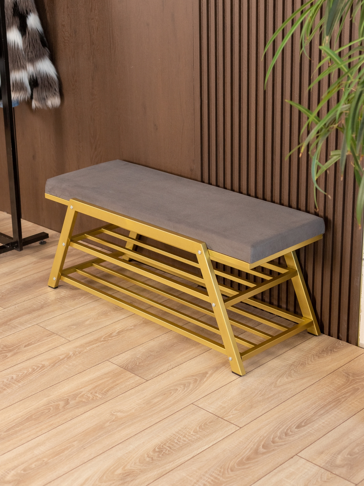 Обувница с мягким сиденьем велюр Акера золотой/серый
