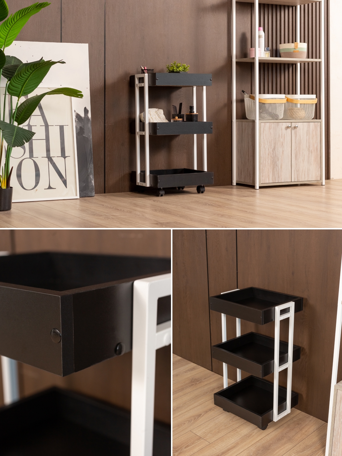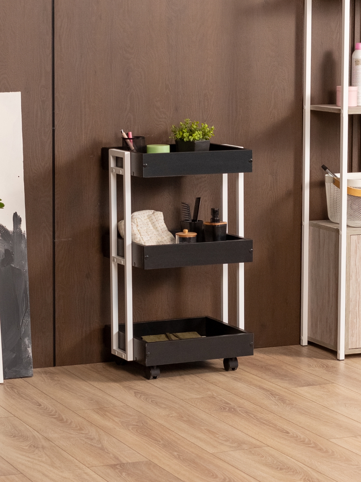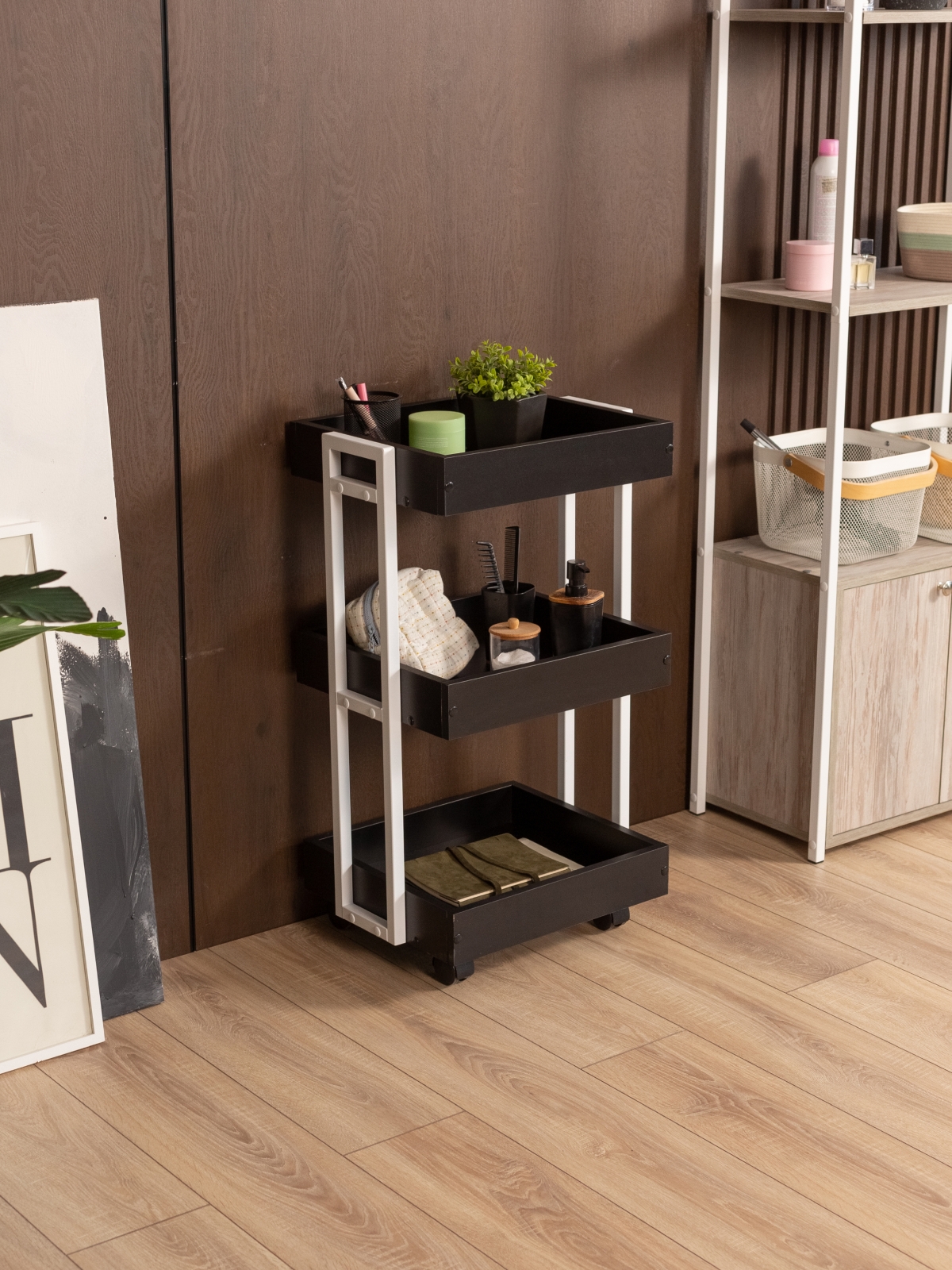Тележка косметологическая на колесиках «Ангара» — идеальное изделие для экономии пространства. Открытая система хранения — это быстрый доступ ко всему необходимому. Бортики по краям полок защищают предметы от падения. Компактная тележка помогает грамотно распоряжаться свободной площадью и не загромождать комнату лишними вещами. Этот предмет мебели отлично впишется в небольшое помещение. Трехъярусная тележка расширяет полезное пространство квартиры, дома, дачи или офиса и дополняет интерьер. Тележка мобильна: в отличие от громоздких стеллажей ее можно легко передвигать по комнате благодаря ящикам на колесиках. Стопперы на них позволяют зафиксировать стеллаж на одном месте. Полки изготовлены из ЛДСП, благодаря чему они отличаются прочностью и долговечностью. Материал повторяет фактуру и цвет древесины. Полки из ЛДСП неприхотливы в уходе: достаточно периодически смахивать с них пыль сухой мягкой салфеткой или протирать влажной при более выраженных загрязнениях. Органайзер для маникюрного набора  подходит не только для бытовых нужд, но и для профессионального использования в салонах красоты, парикмахерских, маникюрных кабинетах. Она отлично впишется в современные интерьеры в стилях лофт и минимализм.