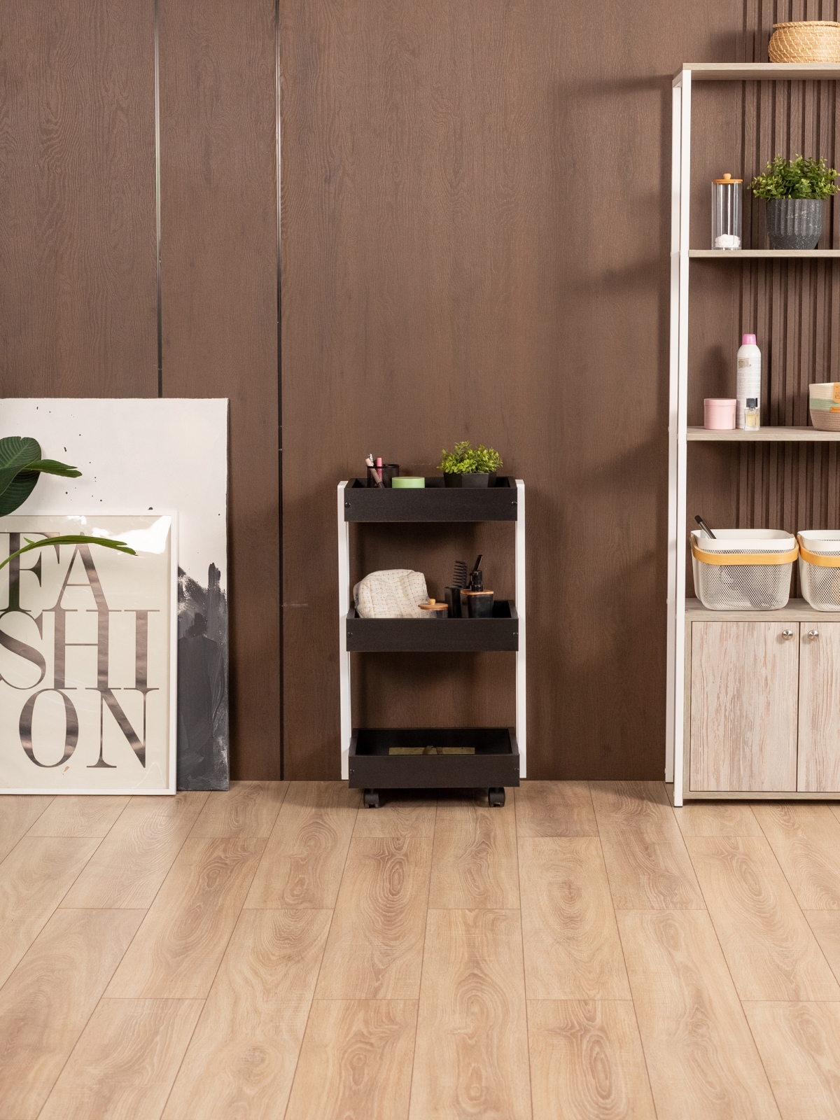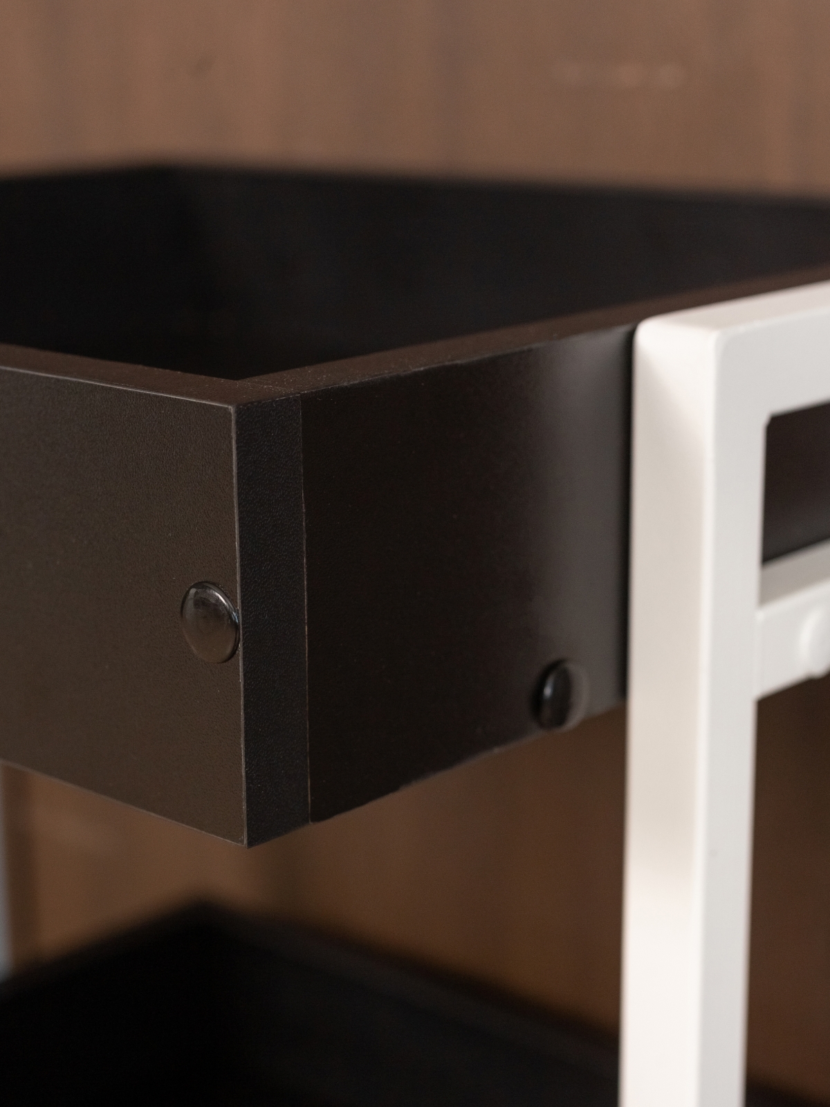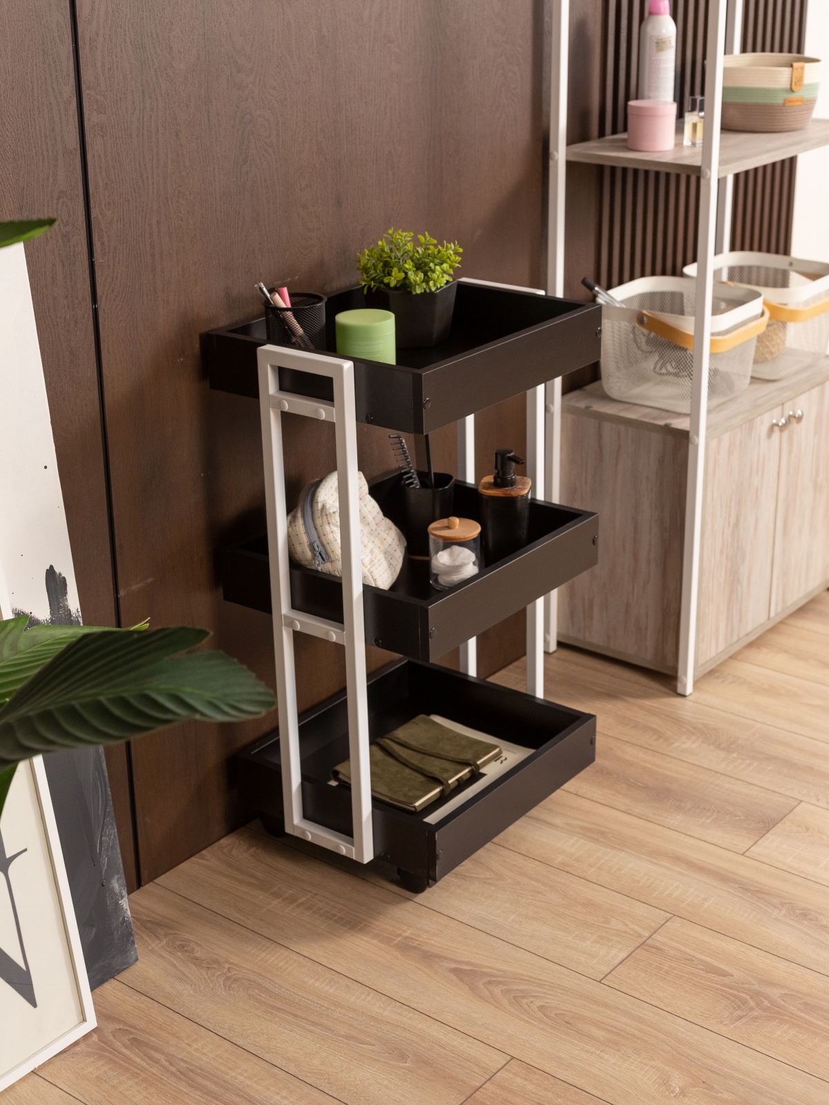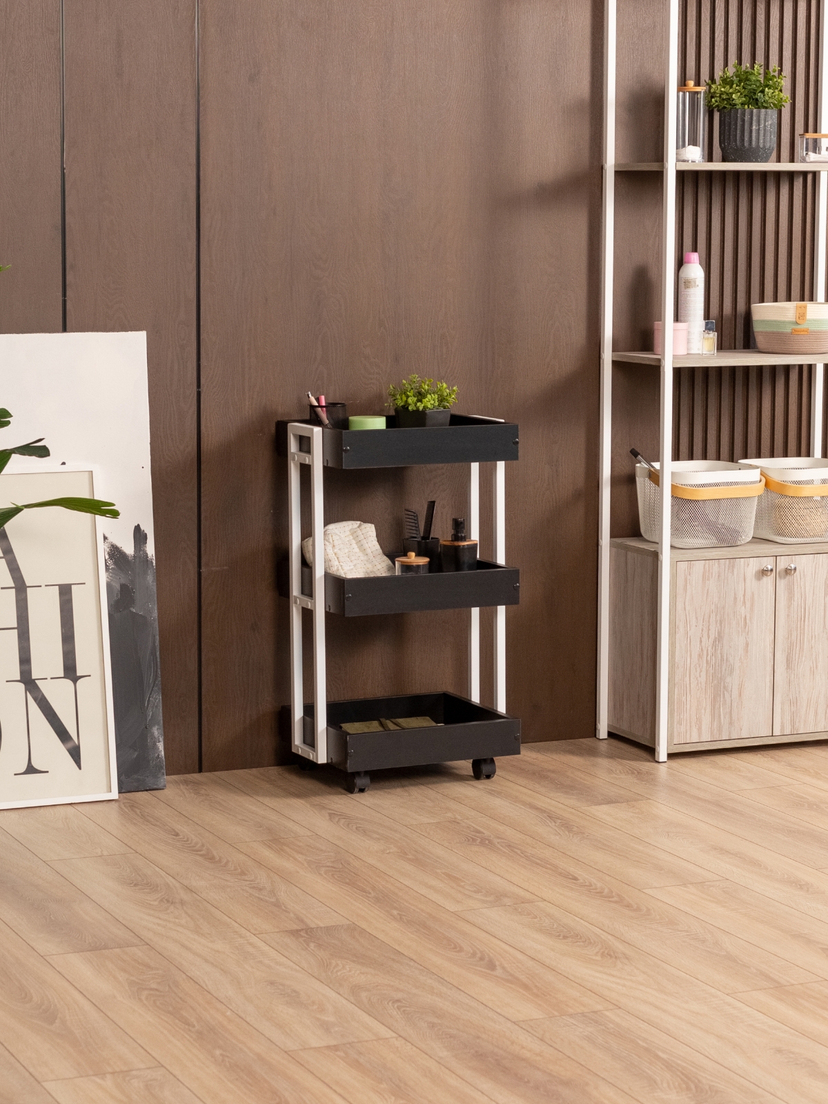 Тележка косметологическая на колесиках «Ангара» — идеальное изделие для экономии пространства. Открытая система хранения — это быстрый доступ ко всему необходимому. Бортики по краям полок защищают предметы от падения. Компактная тележка помогает грамотно распоряжаться свободной площадью и не загромождать комнату лишними вещами. Этот предмет мебели отлично впишется в небольшое помещение. Трехъярусная тележка расширяет полезное пространство квартиры, дома, дачи или офиса и дополняет интерьер. Тележка мобильна: в отличие от громоздких стеллажей ее можно легко передвигать по комнате благодаря ящикам на колесиках. Стопперы на них позволяют зафиксировать стеллаж на одном месте. Полки изготовлены из ЛДСП, благодаря чему они отличаются прочностью и долговечностью. Материал повторяет фактуру и цвет древесины. Полки из ЛДСП неприхотливы в уходе: достаточно периодически смахивать с них пыль сухой мягкой салфеткой или протирать влажной при более выраженных загрязнениях. Органайзер для маникюрного набора  подходит не только для бытовых нужд, но и для профессионального использования в салонах красоты, парикмахерских, маникюрных кабинетах. Она отлично впишется в современные интерьеры в стилях лофт и минимализм.
