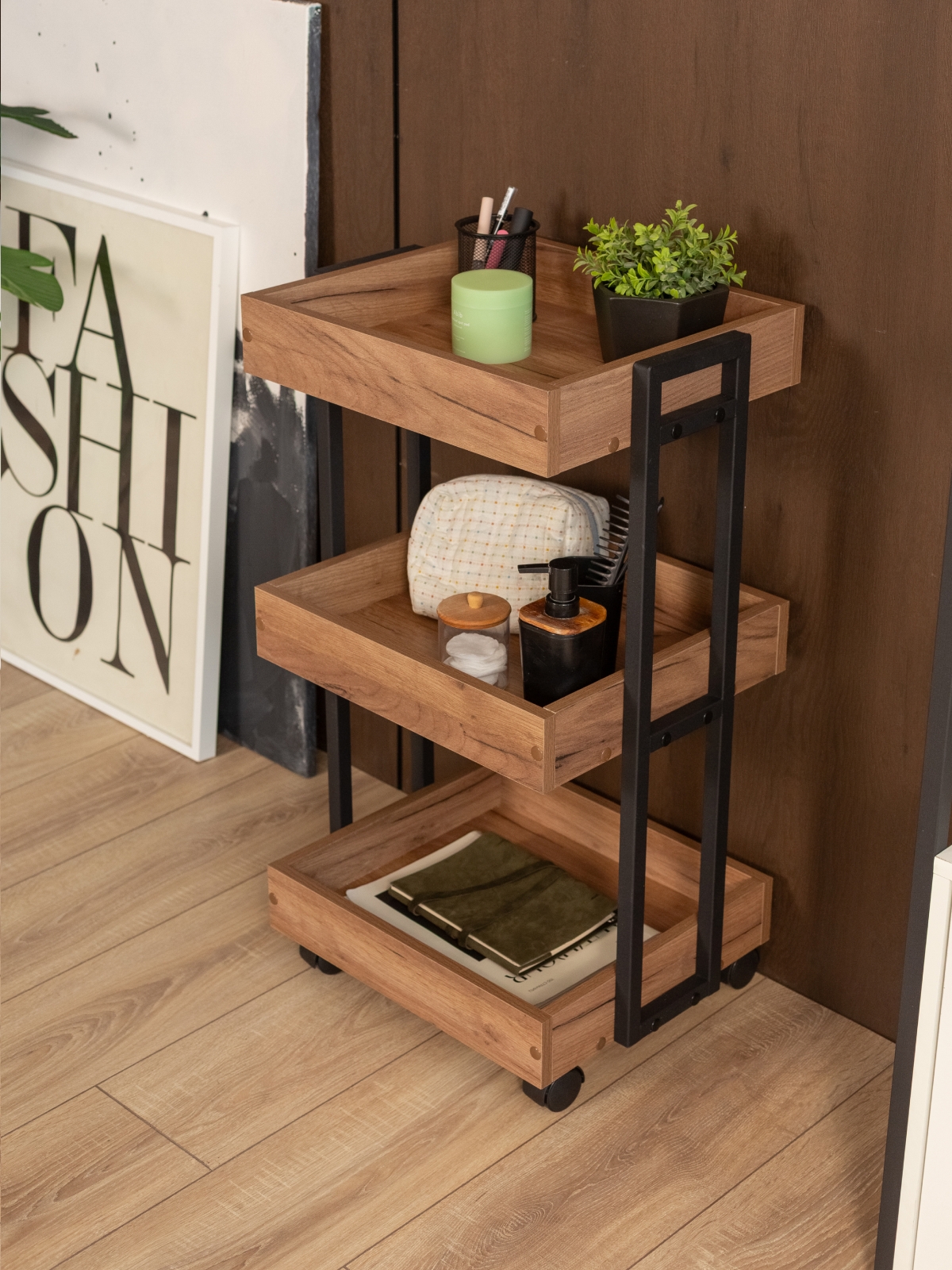 Тележка косметологическая на колесиках Ангара черный/амаретто