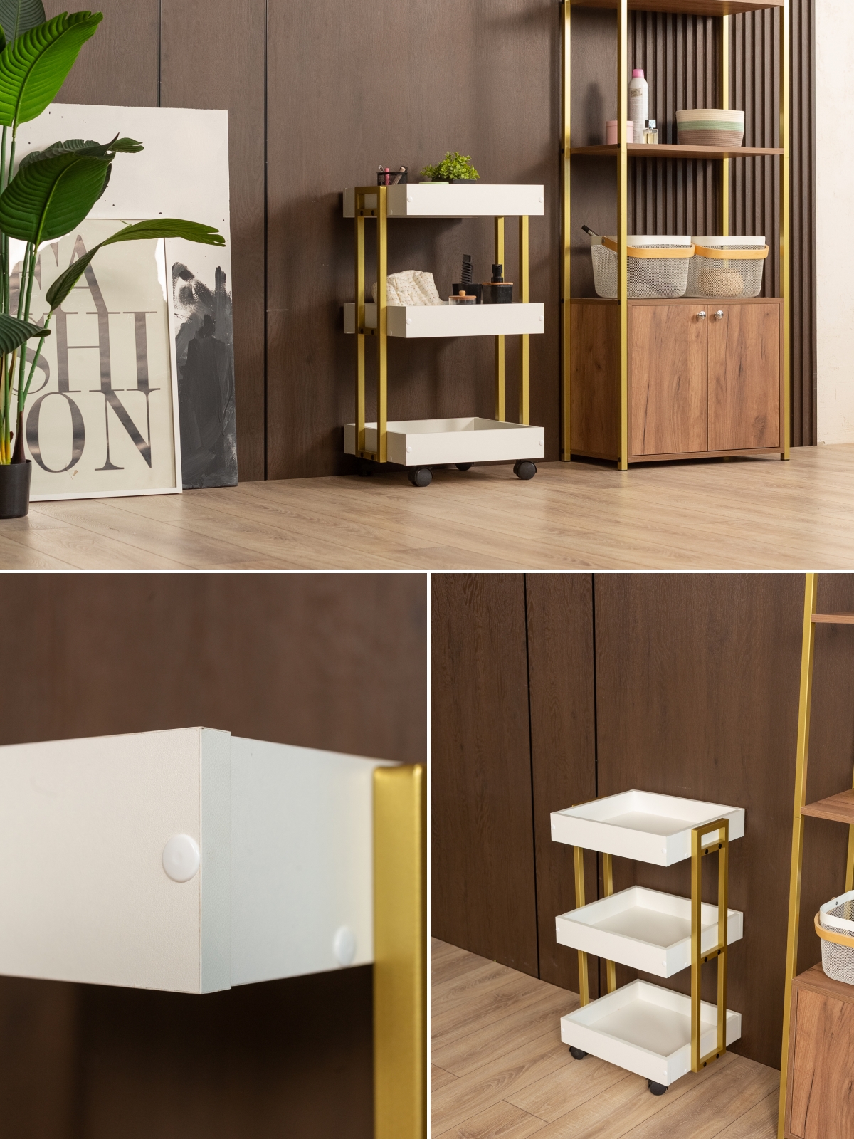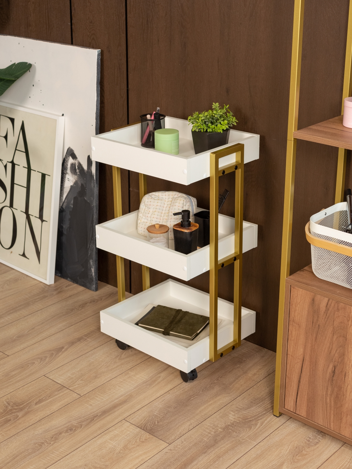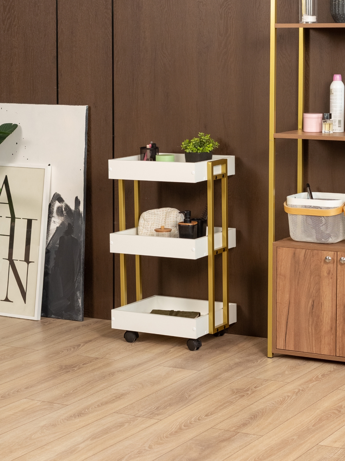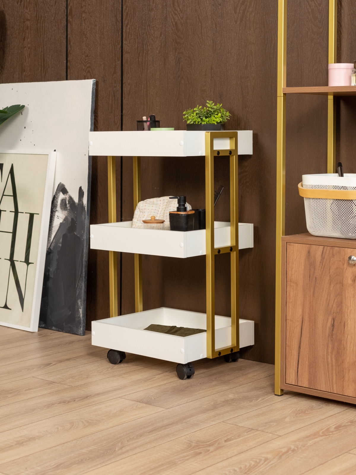 Тележка косметологическая на колесиках Ангара золотой/белый