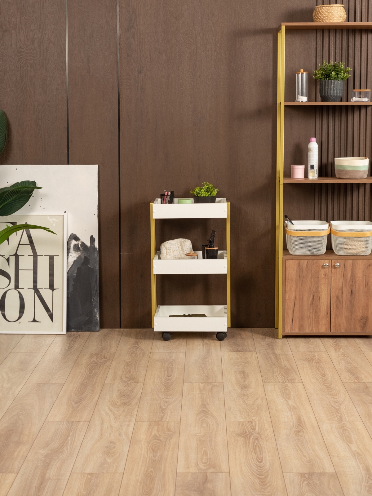 Тележка косметологическая на колесиках «Ангара» — идеальное изделие для экономии пространства. Открытая система хранения — это быстрый доступ ко всему необходимому. Бортики по краям полок защищают предметы от падения. Компактная тележка помогает грамотно распоряжаться свободной площадью и не загромождать комнату лишними вещами. Этот предмет мебели отлично впишется в небольшое помещение. Трехъярусная тележка расширяет полезное пространство квартиры, дома, дачи или офиса и дополняет интерьер. Тележка мобильна: в отличие от громоздких стеллажей ее можно легко передвигать по комнате благодаря ящикам на колесиках. Стопперы на них позволяют зафиксировать стеллаж на одном месте. Полки изготовлены из ЛДСП, благодаря чему они отличаются прочностью и долговечностью. Материал повторяет фактуру и цвет древесины. Полки из ЛДСП неприхотливы в уходе: достаточно периодически смахивать с них пыль сухой мягкой салфеткой или протирать влажной при более выраженных загрязнениях. Органайзер для маникюрного набора  подходит не только для бытовых нужд, но и для профессионального использования в салонах красоты, парикмахерских, маникюрных кабинетах. Она отлично впишется в современные интерьеры в стилях лофт и минимализм.