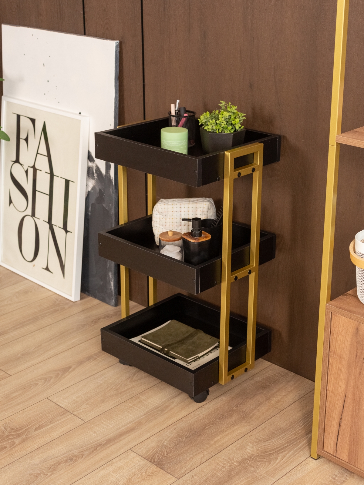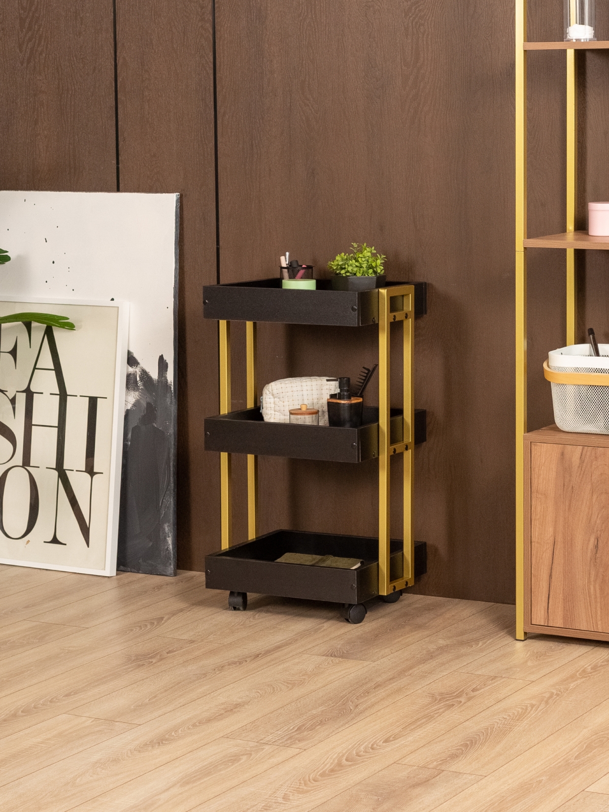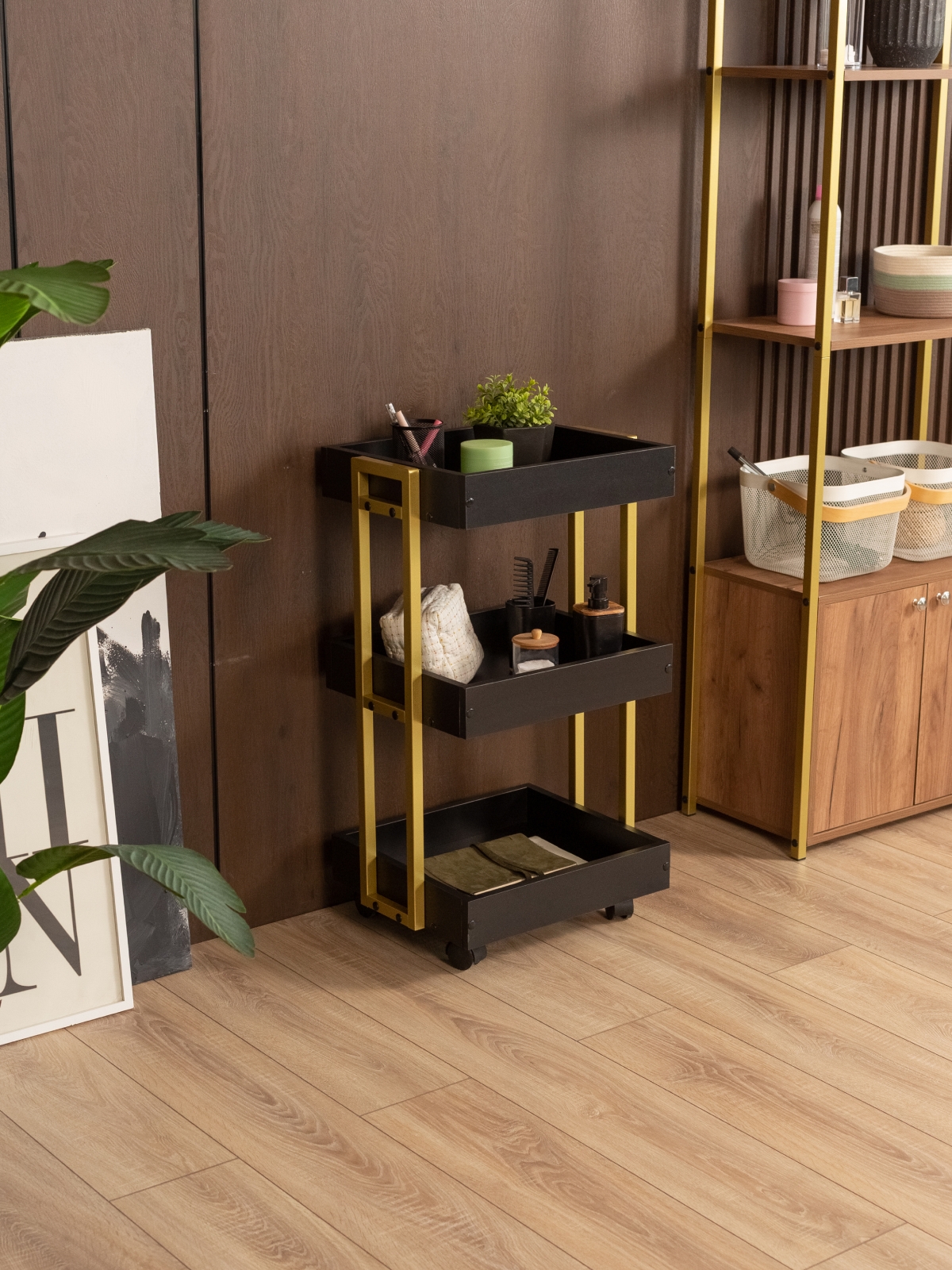 Тележка косметологическая на колесиках Ангара золотой/черный