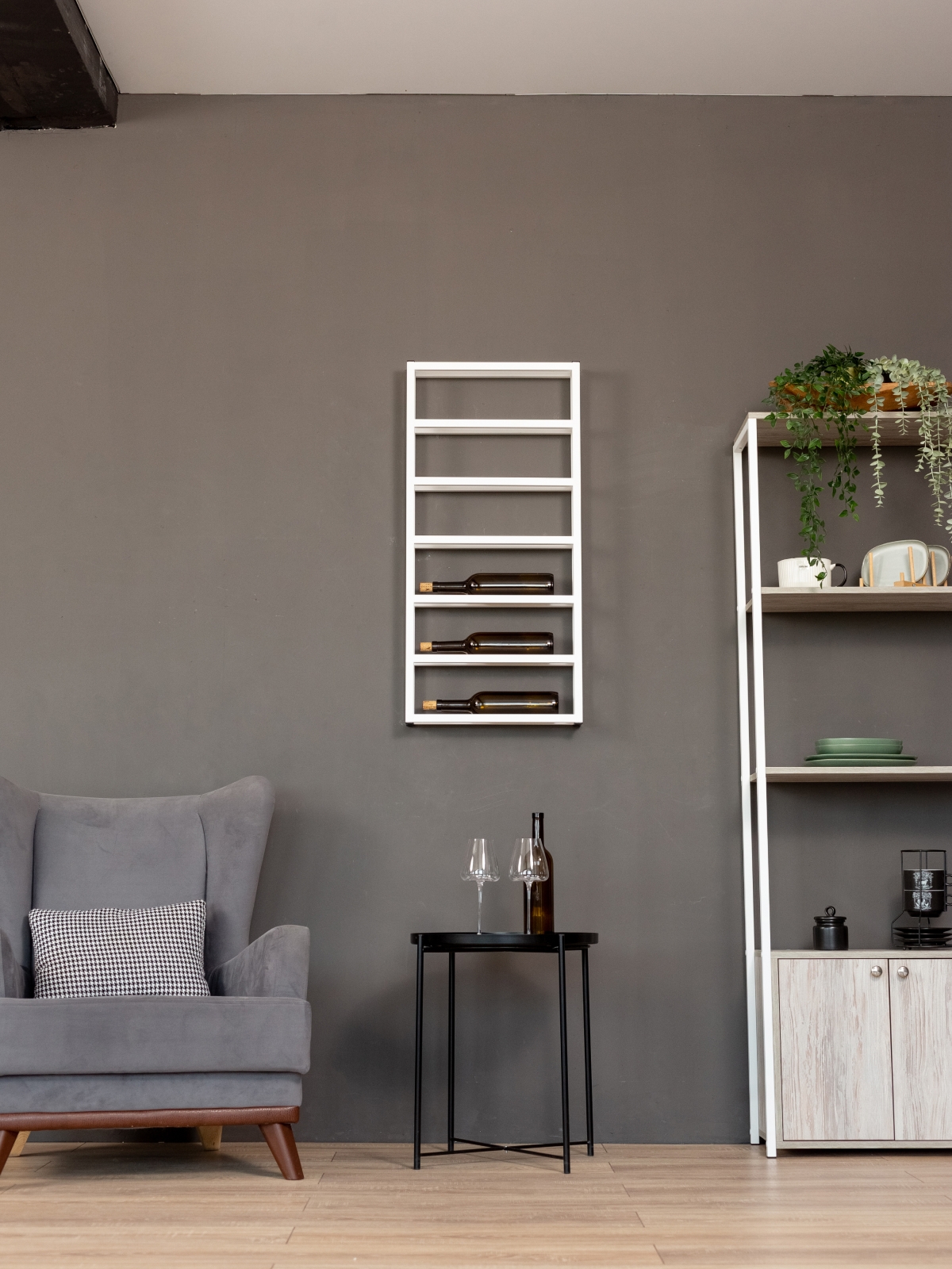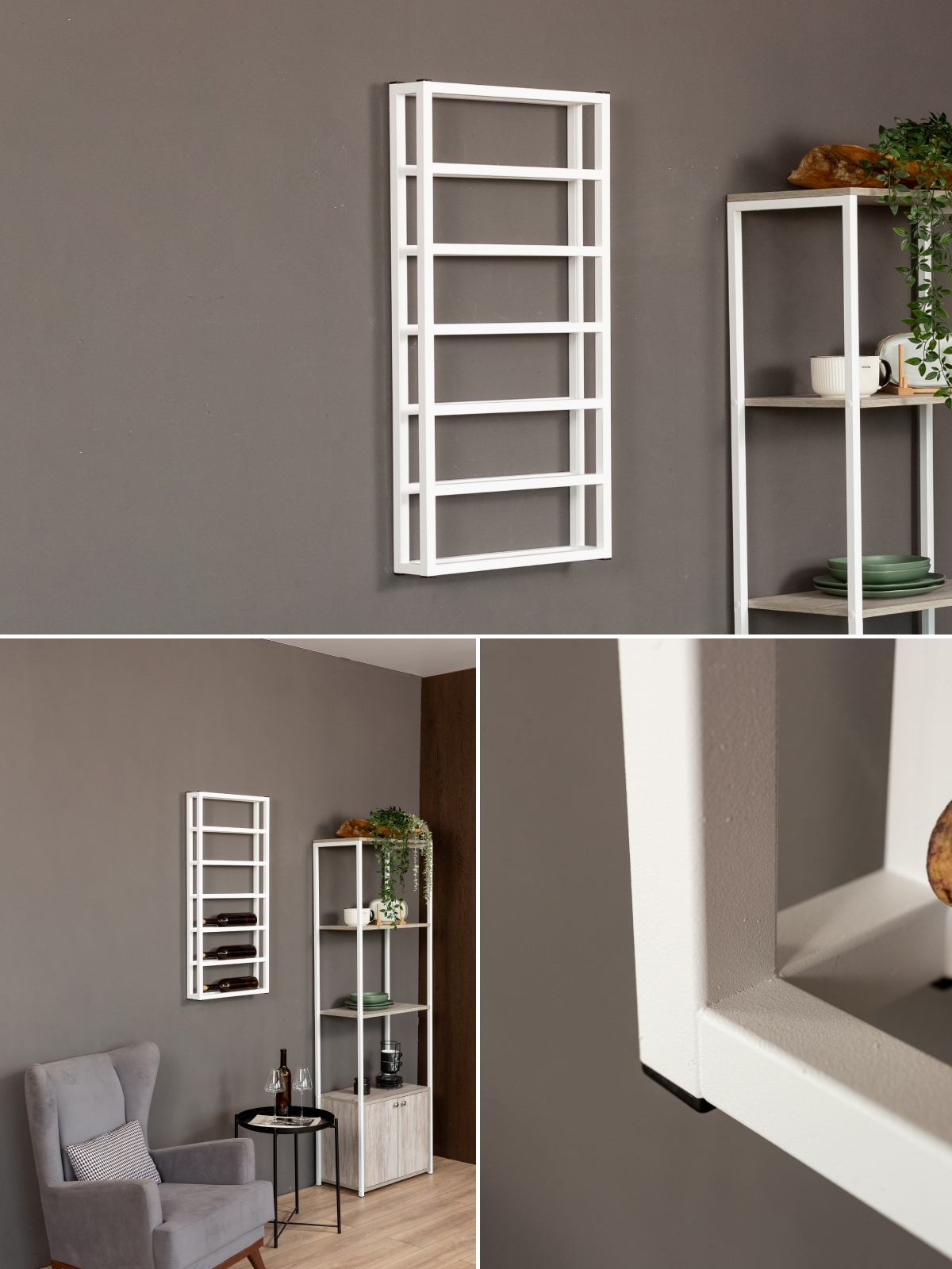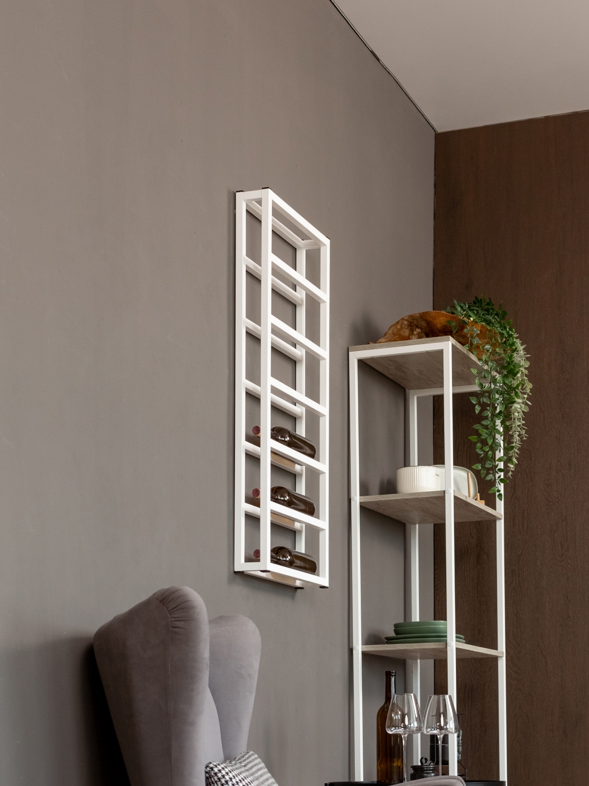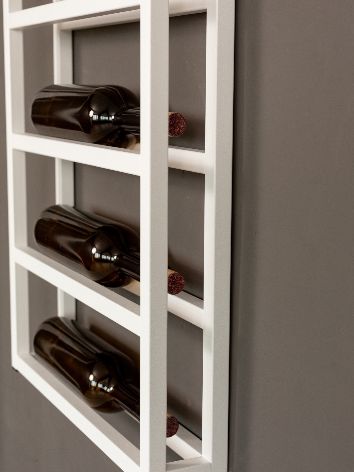 В дизайне винницы легко угадывается эстетика скандинавского интерьера — сдержанная, но глубокая, где важна каждая деталь. Белый каркас бутылочницы подчеркивает свежесть пространства, а его универсальность позволяет интегрировать полку в различные дизайнерские решения: от минималистичной кухни до эклектичной столовой.