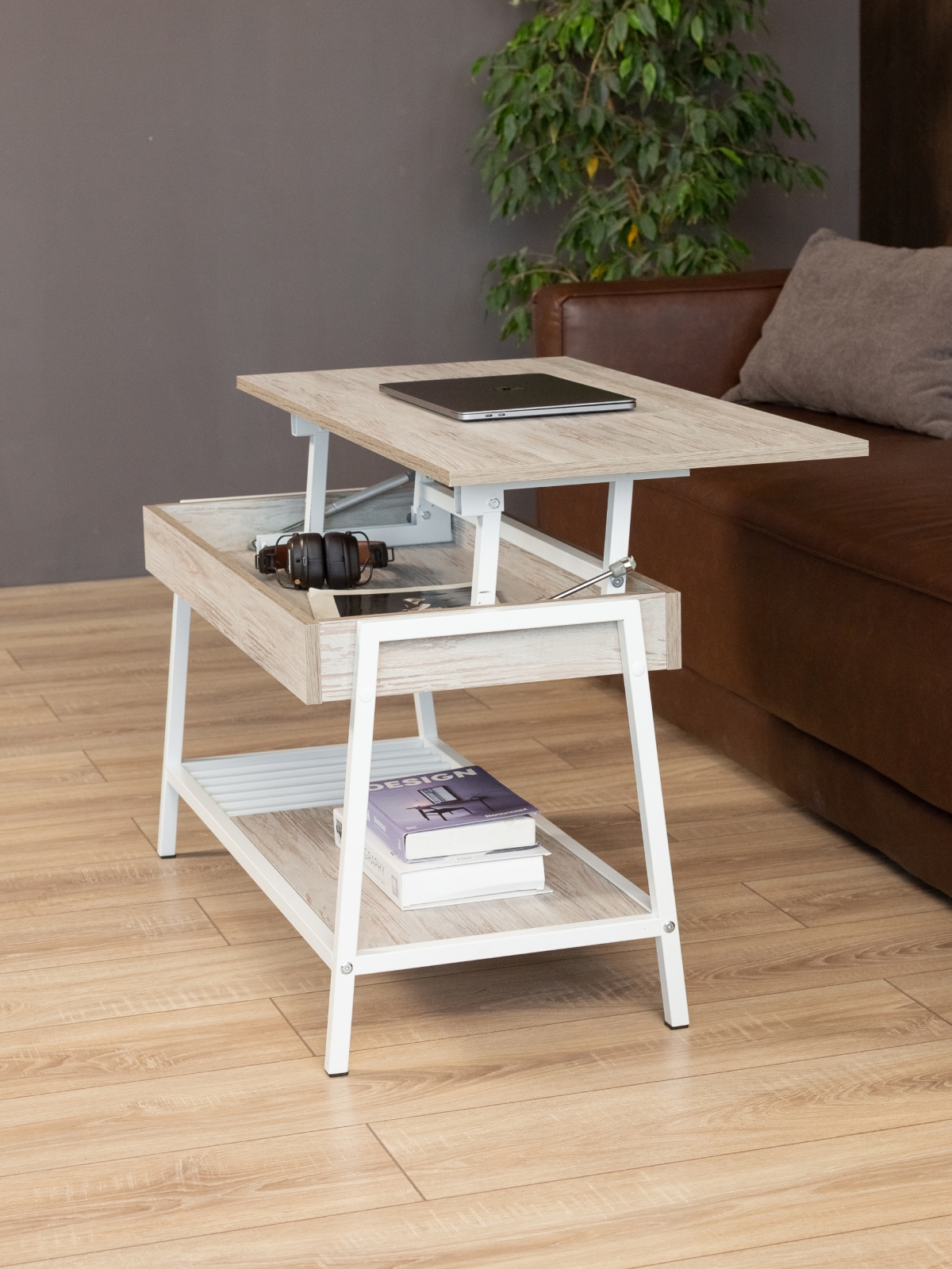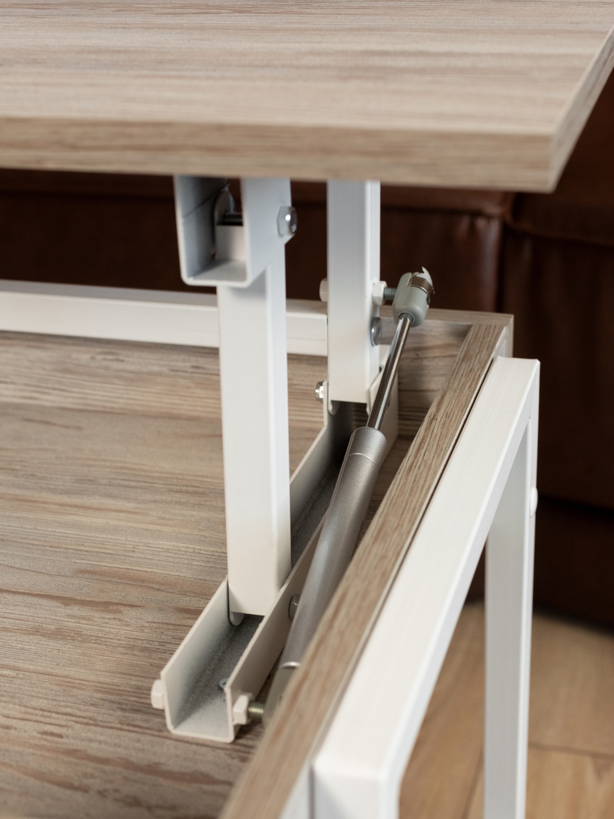 Журнальный стол-трансформер с подъемным механизмом легко впишется в светлые и просторные комнаты. Функциональный столик 2 в 1 станет идеальным выбором для дома, квартиры или студии, особенно если вы предпочитаете стиль лофт или скандинавский минимализм. Он сочетает в себе две функции: трансформируется из журнального столика в рабочий для ноутбука или даже консоль, что делает его отличным решением для организации вашего пространства.