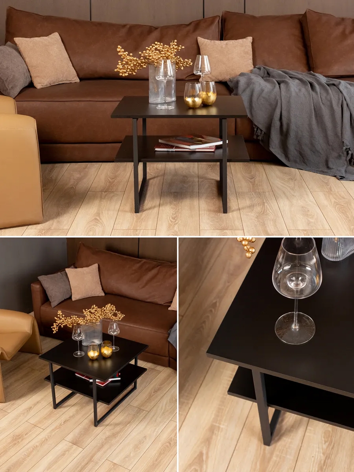 Журнальный стол в стиле лофт «Киву» привнесет комфорт и утонченность в ваш интерьер. Стол со стильным и лаконичным дизайном будет уместен в гостиной, кабинете, прихожей, спальне или любом другом уголке вашей квартиры. Изделие также можно разместить в фойе отеля или холле офиса. Стол не создает ощущения перегруженности и оставляет достаточно свободного пространства. Строгая квадратная форма дополнит рабочую и домашнюю обстановку, придаст симметричность. Этот яркий предмет интерьера имеет не только эстетическую, но и практическую ценность. На столике можно расположить вещи, которые должны быть в пределах вашей видимости: пульт от телевизора, телефон, лекарства, книги и журналы. Журнальный столик можно использовать для разных целей: чаепития, приема пищи, работы с документами и ноутбуком, занятий творчеством. Двухуровневая конструкция со столешницами из качественного ЛДСП подойдет для хранения сувениров и предметов декора. Журнальный стол не требует сложного ухода: достаточно регулярно протирать столешницы мягкой тканью. Более выраженные загрязнения можно убирать влажной салфеткой.