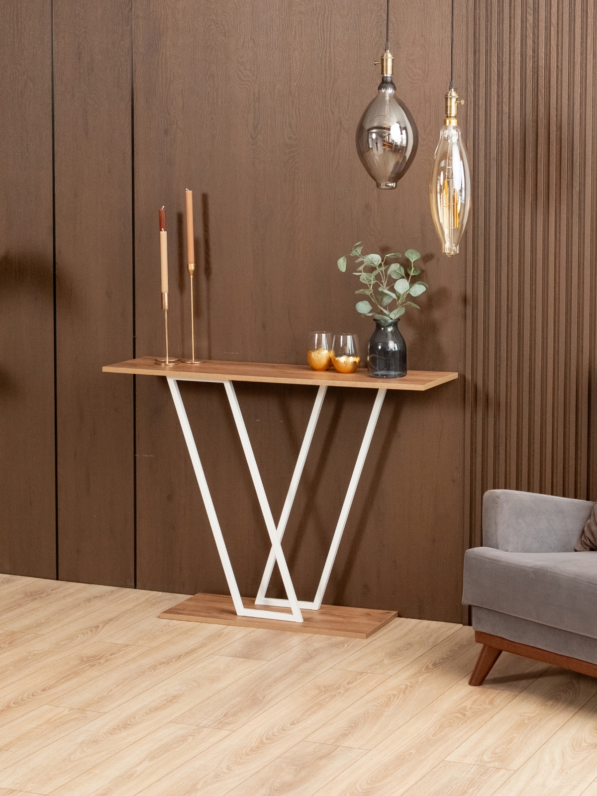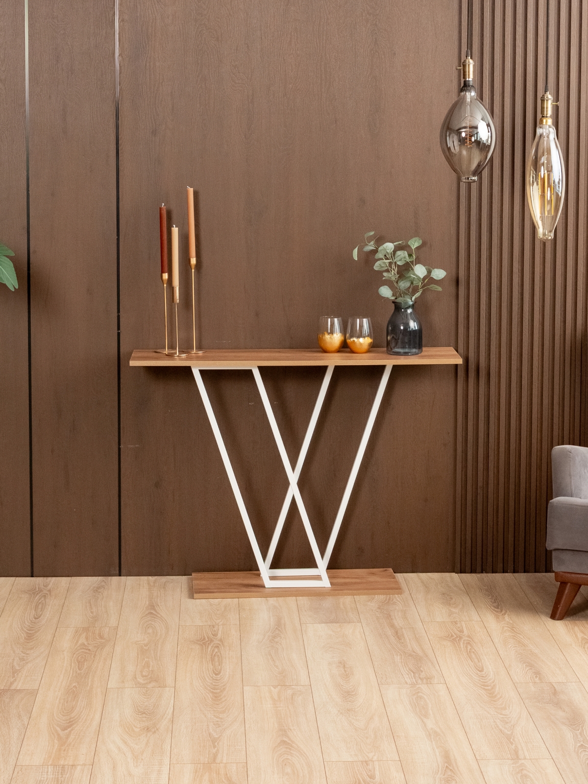 Узкую интерьерную консоль можно поставить на балкон для создания уютной атмосферы, в спальне или гостиной как декоративную полку, а также разместить в прихожей для хранения мелочей. V-образный силуэт каркаса визуально вытягивает пространство и подчеркивает современный подход к оформлению. Консольный столик легко интегрируется в интерьерный стиль лофт, где акцент делается на минимализме и простоте форм. Идеально вписывается в современные квартиры и офисы, подчеркивает воздушность пространства, создавая уютную и спокойную атмосферу. Белый металлический каркас добавляет мебели легкости, а строгие линии подчеркивают актуальность и элегантность. Безупречный выбор для небольших комнат, где важно не перегружать пространство, при этом сохранить функциональность меблировки.