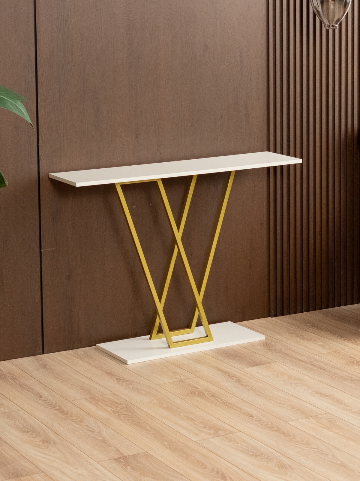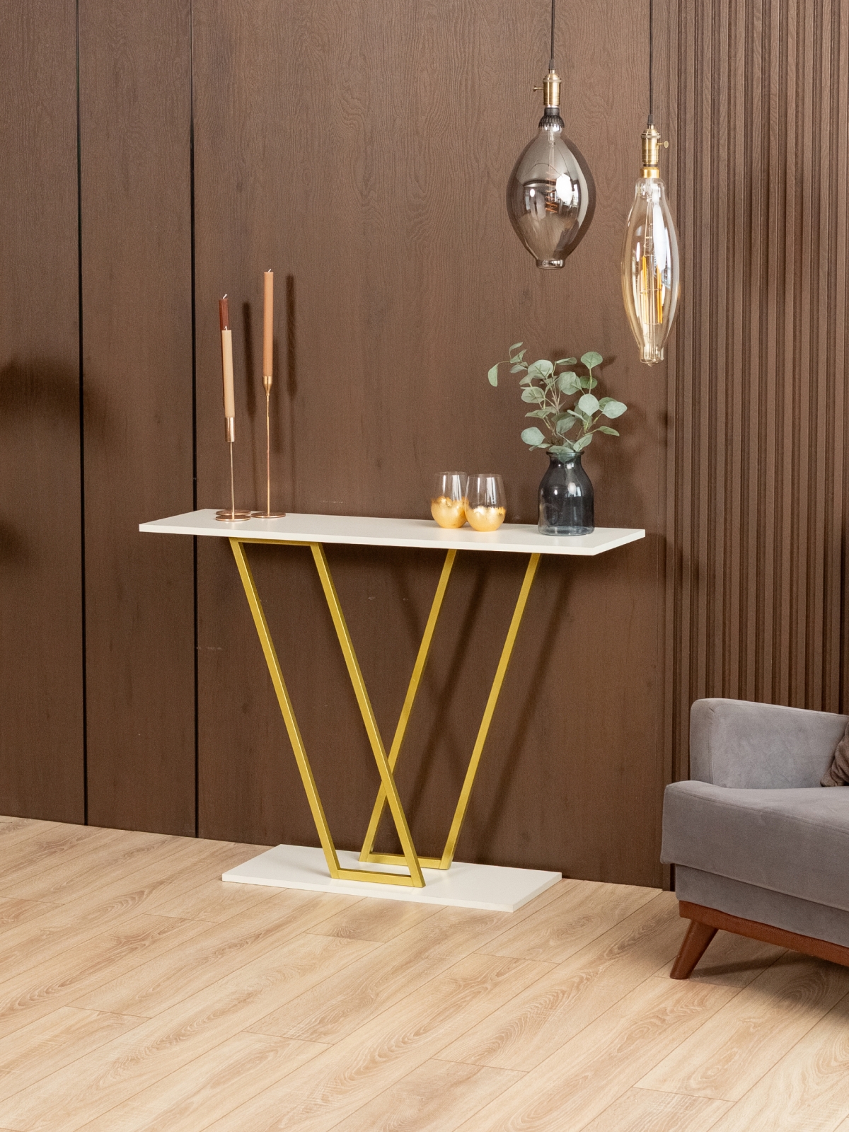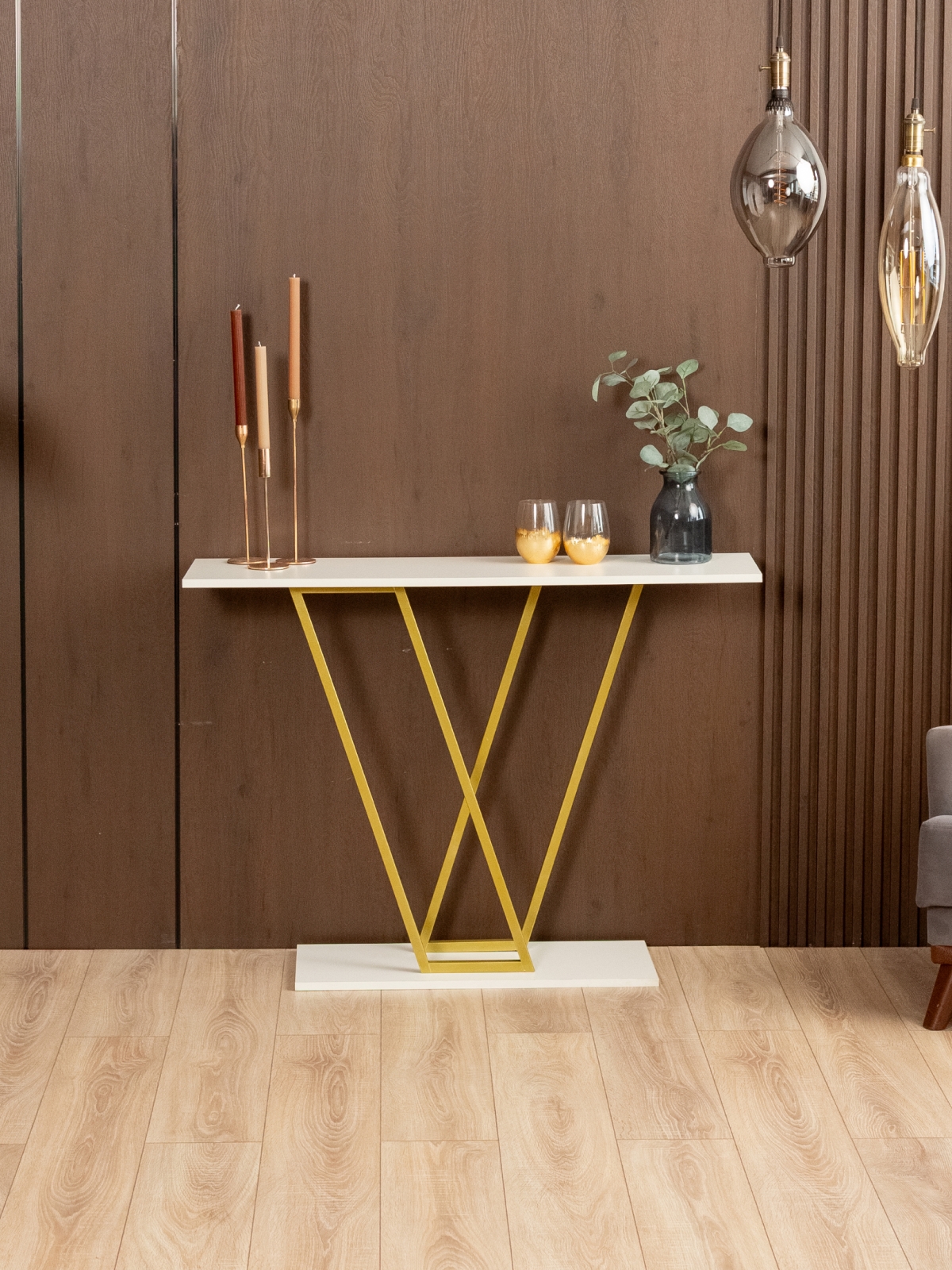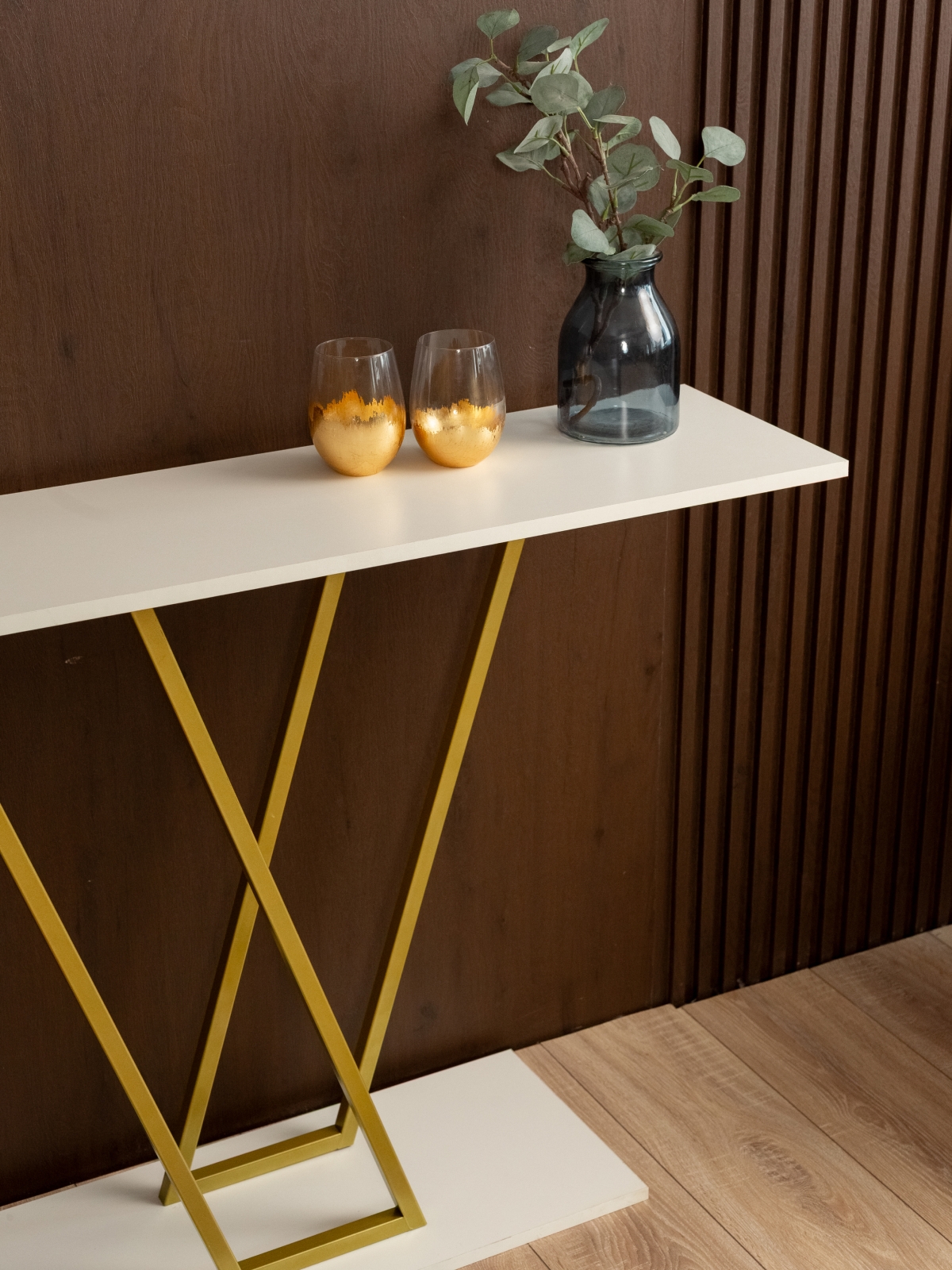 Консольный столик в прихожую лофт Чарко золотой/белый