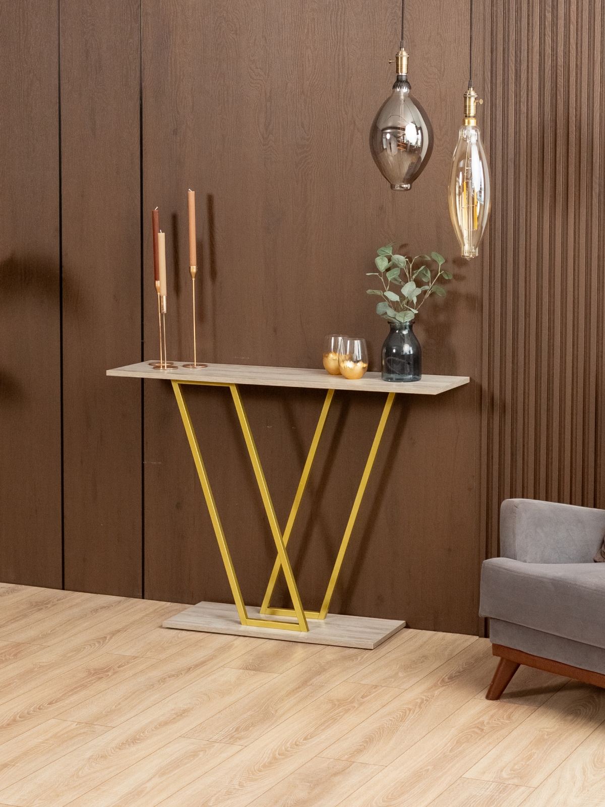 Консольный столик в прихожую лофт Чарко золотой/кашемир