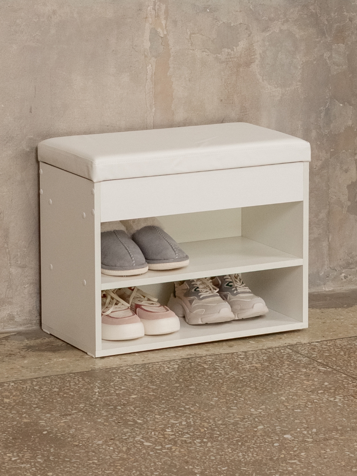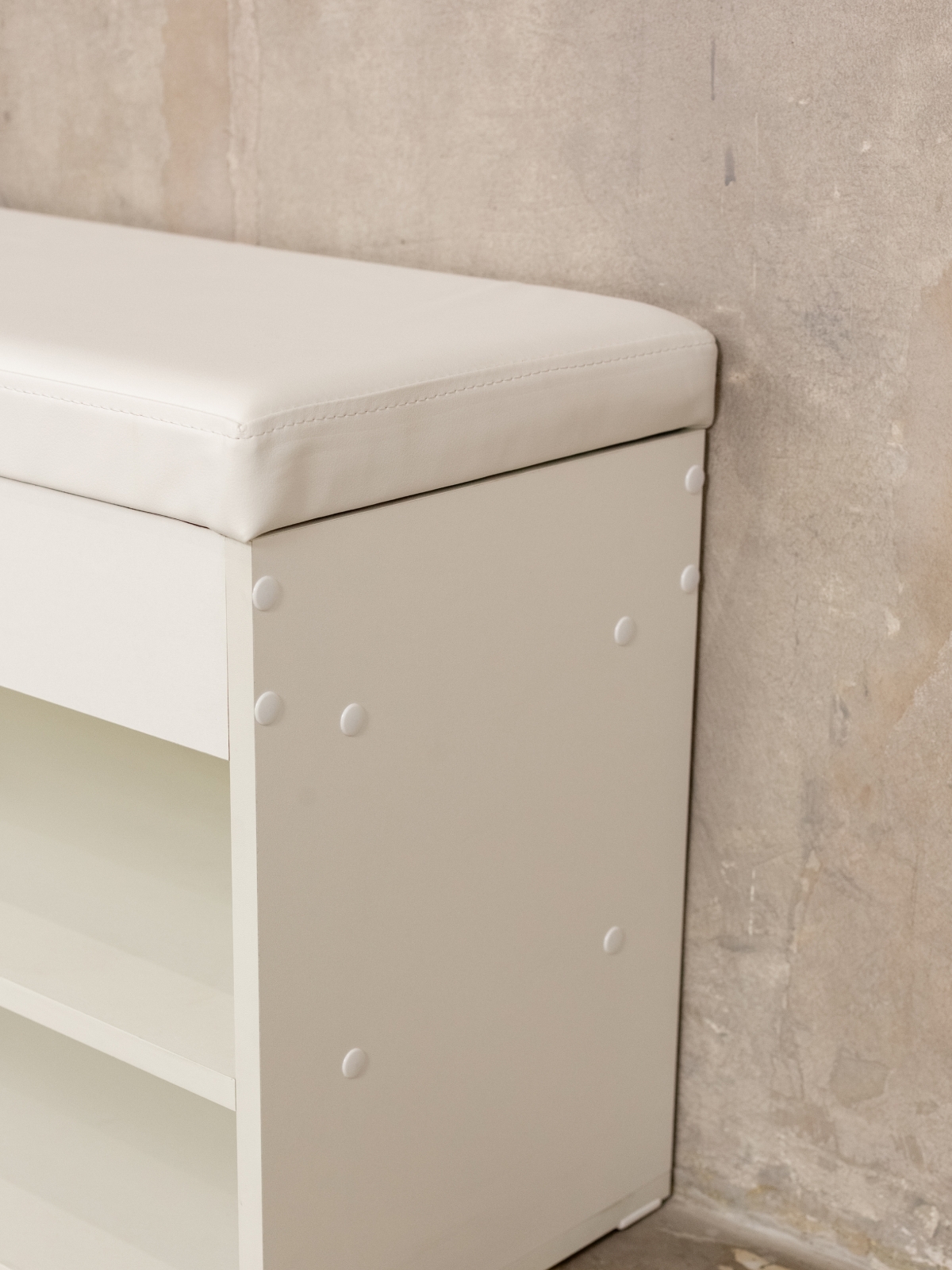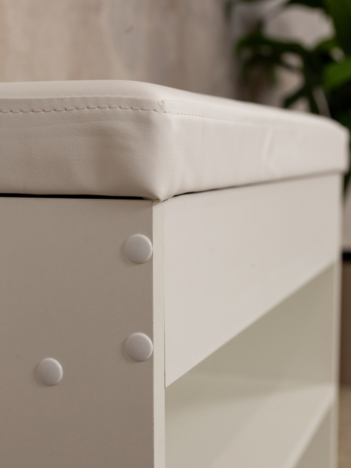 Обувница в прихожую с мягким сиденьем Рона белый/белый