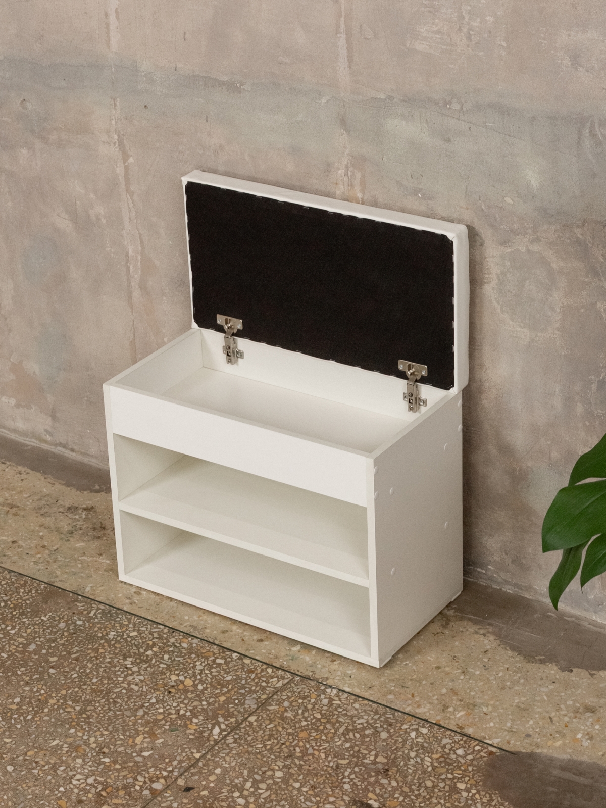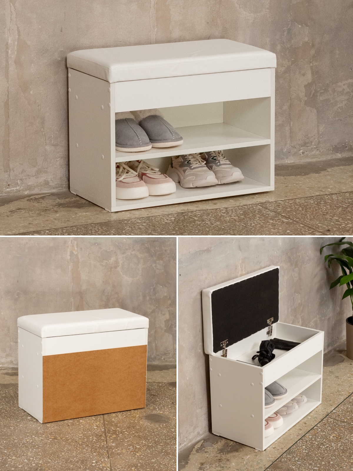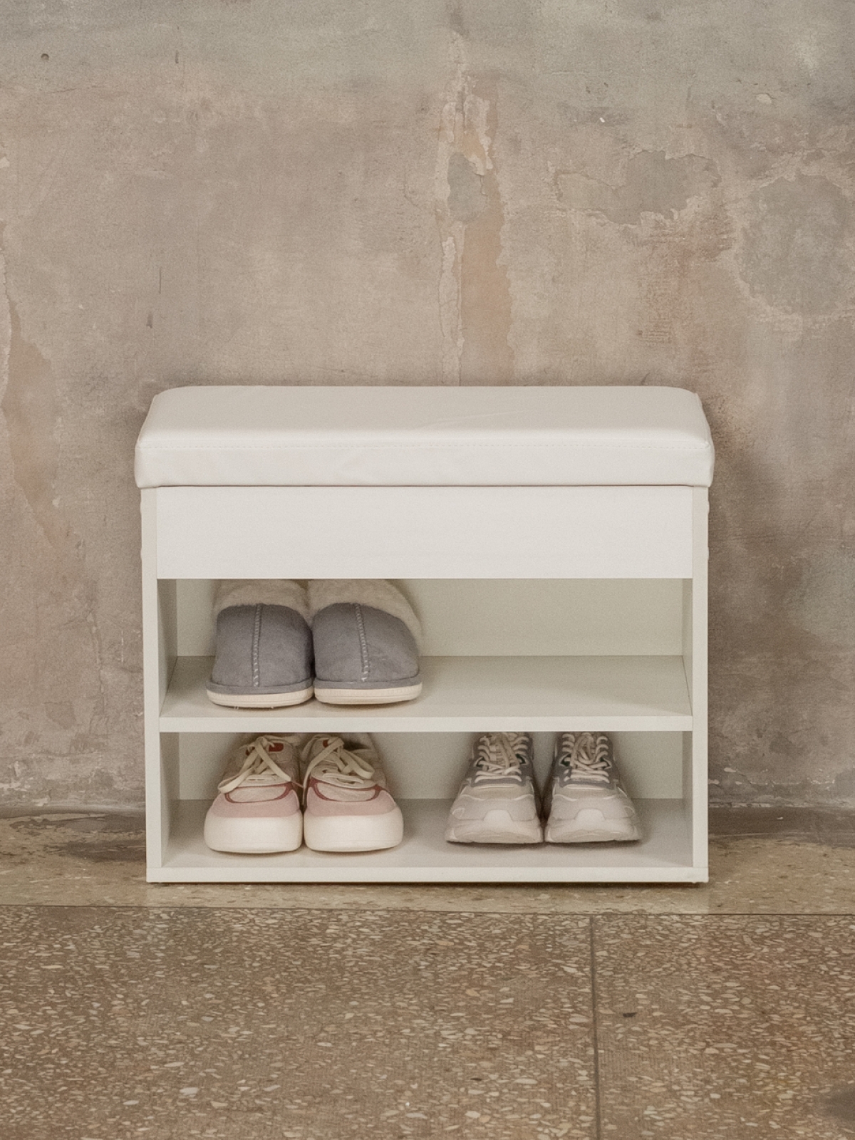 Обувница в прихожую с мягким сиденьем Рона белый/белый