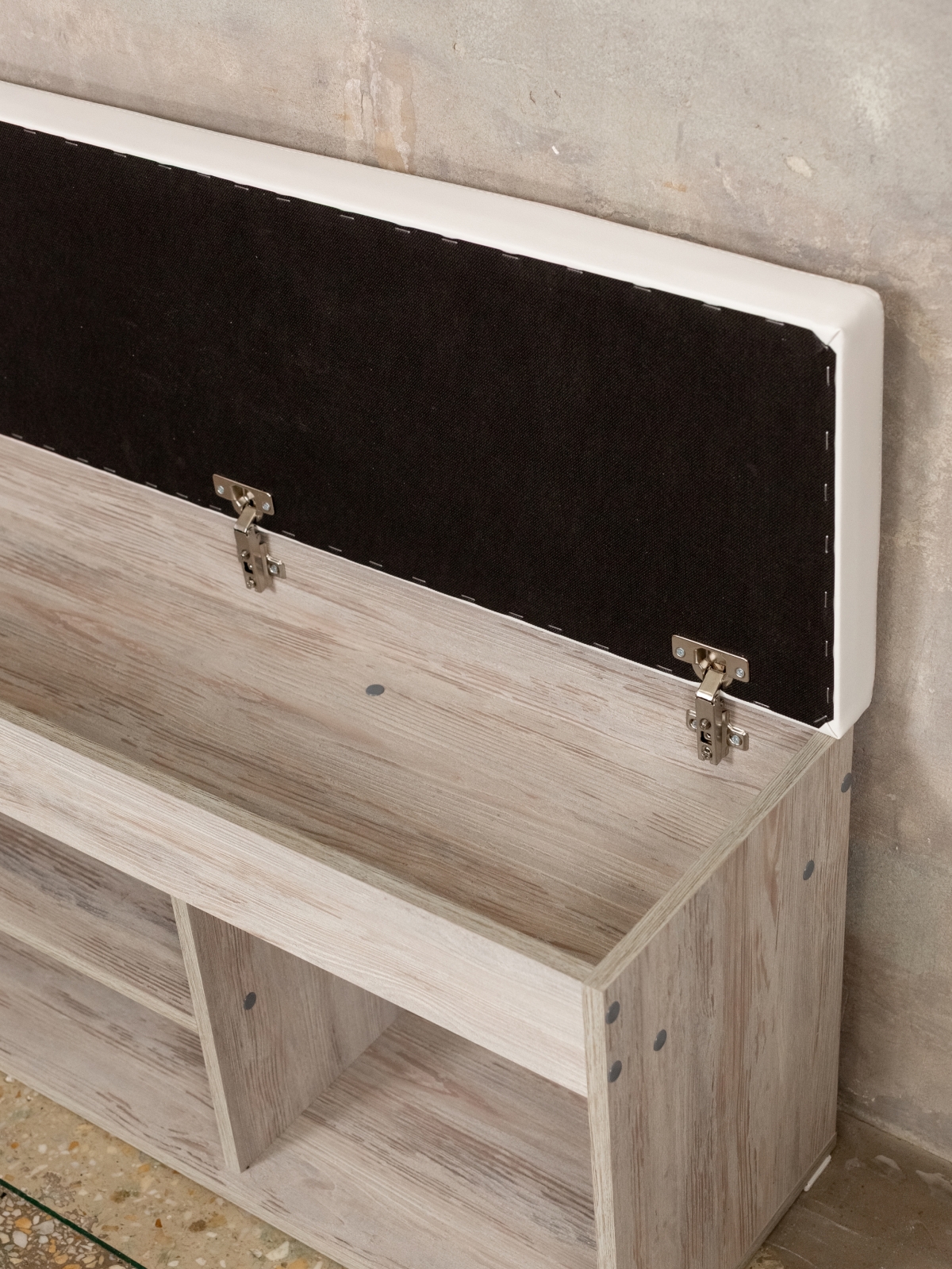 Обувница в прихожую с мягким сиденьем Тиса кашемир/белый